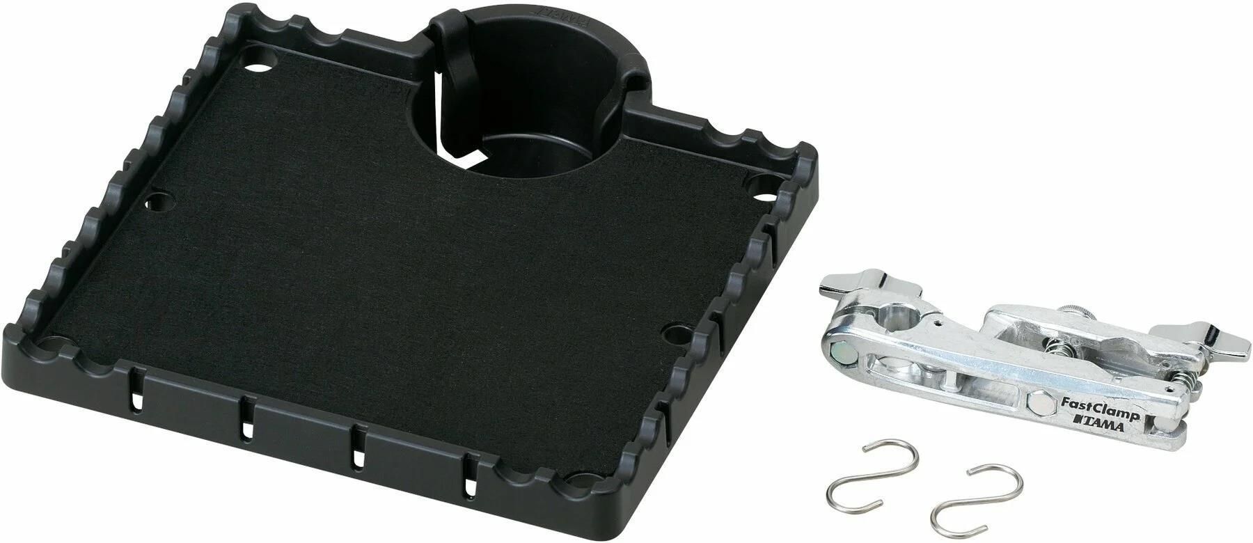 Tama TAT10 Taca na akcesoria TAT10 umożliwia perkusistom łatwy dostęp do wszystkich potrzebnych przedmiotów. Wyłożona filcem powierzchnia o wymiarach 235 × 254 mm posiada miejsce na napoje, a jej krawędzie zostały tak wyprofilowane, aby zapobiec staczaniu się pałek perkusyjnych. Na dwóch dołączonych haczykach w kształcie litery S można zawiesić kable lub słuchawki. Na spodzie tacy umieszczono 6 okrągłych otworów dla zachowania porządku w różnego rodzaju kablach – słuchawkowych,zasilających lub od metronomu. Od spodu tacy znajdują się cztery kołki służące do montażu z Fast Clampem MC61 (dołączony do zestawu). •Wymiary: 235 (9¼") × 254 mm (10") •Miejsce na napoje •W zestawie Fast Clamp MC61 •2 haczyki w kształcie litery S do zawieszania kabli lub słuchawek •Wyprofilowane krawędzie do przechowywania pałek perkusyjnych •Śruba 5” i 8” do montażu na statywie •Dopuszczalne obciążenie do 2,5 kg