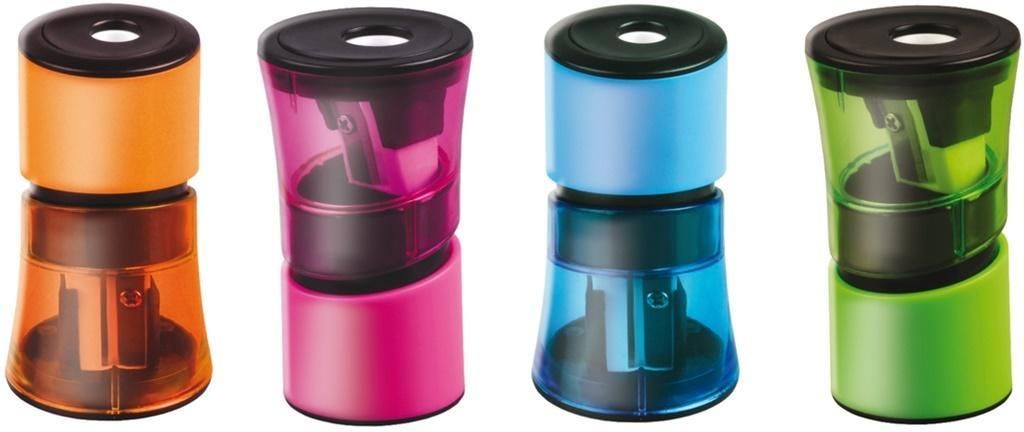 Temperówka o ergonomicznym kształcie z dwoma otworami różnej średnicy (11 mm, 8 mm). Wyposażona w stalowe ostrze oraz transparentny pojemnik na ścinki. Opakowanie: display 12 sztuk Opakowanie: pudełko