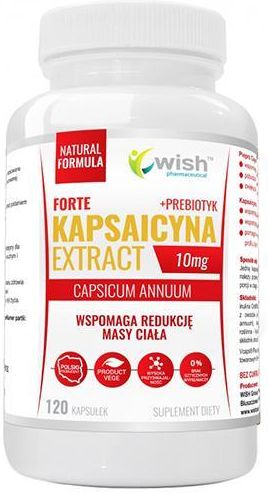 KAPSAICYNA 10mg FORTE EXTRACT PRODUKT WEGAN + PREBIOTYK WISH PHARMACEUTICAL - POLSKI PRODUCENT WITAMIN I SUPLEMENTÓW SUPLEMNT DIETY WSPOMAGAJĄCY UTRATĘ MASY CIAŁA KAPSAICYNE FORTE EXTRAKT WISH Pharmaceutical® ✔️Pieprz Cayenne: wspomaga redukcję masy ciała pobudza termogenezę zwiększa wydatek …