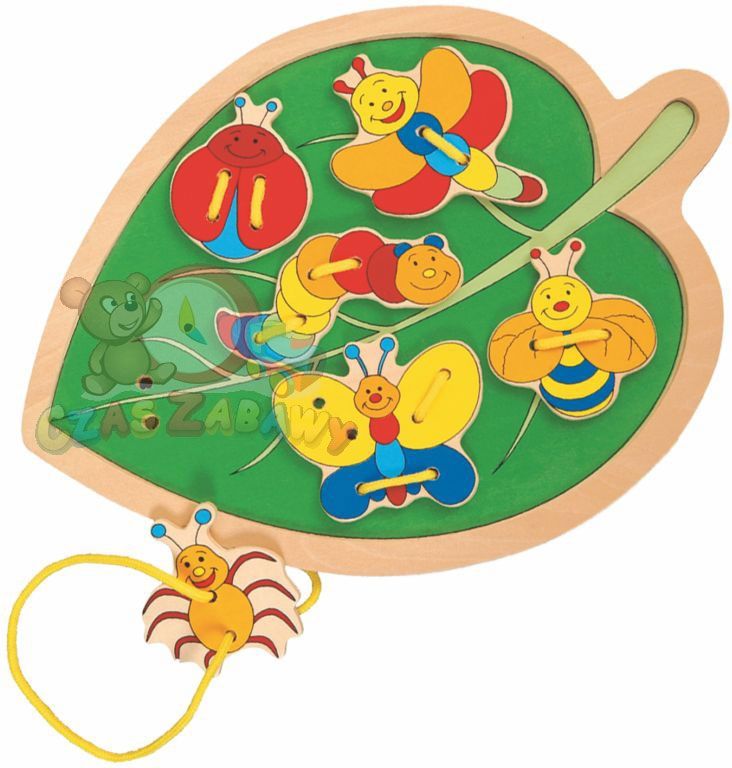 Wspaniała zabawa pełna wrażeń i emocji! Podstawą zestawu jest kolorowy liść, na którym dziecko przy użyciu sznureczka i dziurek umieszcza zabawne robaczki. Podczas zabawy Maluszek doskonali sprawność manualną i koordynację ruchową. Ilość elementów: 8 Czeska firmy WOODY ma długą tradycję siegającą …