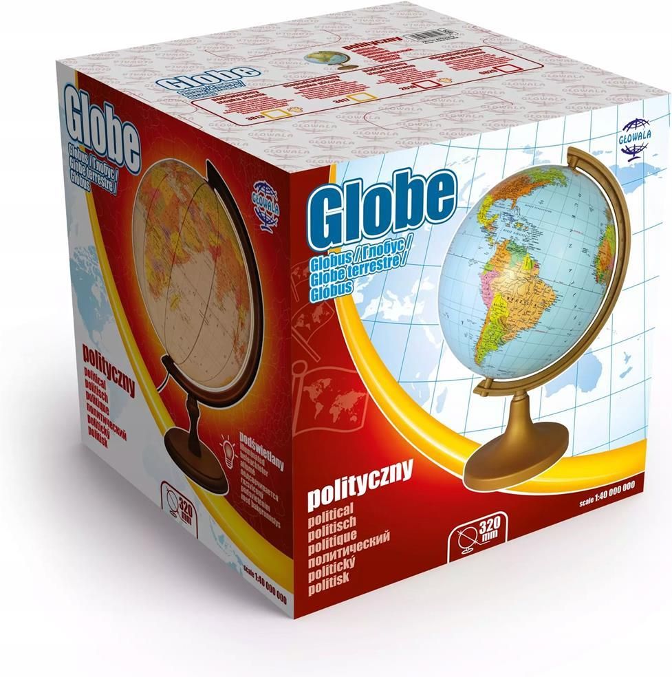 Globus podświetlany o średnicy 32 cm z mapą polityczną na drewnianej stopce Globus podświetlany o średnicy 320 mm to świetne narzędzie edukacyjne oraz dekoracyjny dodatek do każdego wnętrza. Ten szczególny model globusu jest wyposażony w mapę polityczną, która ułatwia naukę o świecie oraz planowanie podróży. Dzięki podświetleniu, globus staje się również ciekawym elementem wyposażenia, który przyciąga wzrok i nadaje niepowtarzalnego charakteru pomieszczeniu.Oprócz solidnej, drewnianej stopki, globus posiada również plastikowe cięciwo, które doskonale stabilizuje całą konstrukcję. Dzięki takiej kombinacji, nasz globus nie tylko prezentuje się elegancko, ale również jest wytrzymały i trwały.Używaj tego podświetlanego globusa, aby wzbogacić swoją wiedzę, czy jak planificación światowej podróży. Ten ciekawy i praktyczny produkt z pewnością przypadnie do gustu każdemu miłośnikowi geografii i nie tylko! EAN: 5906727902618
