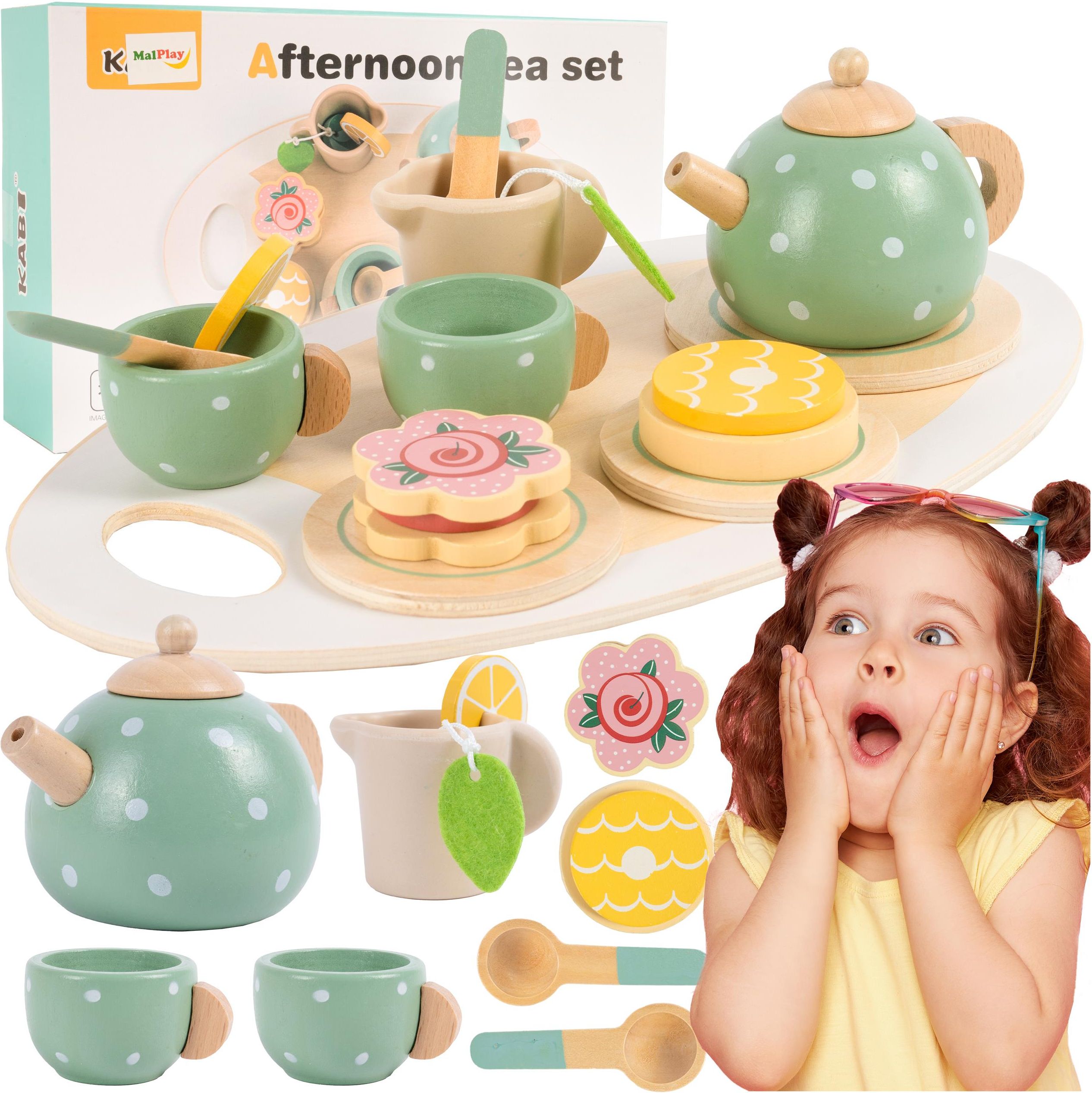 Zestaw Do Herbatki Herbaty Drewniany Do Zabawy Dla Dzieci Imbryczek Tacka Czempiń
