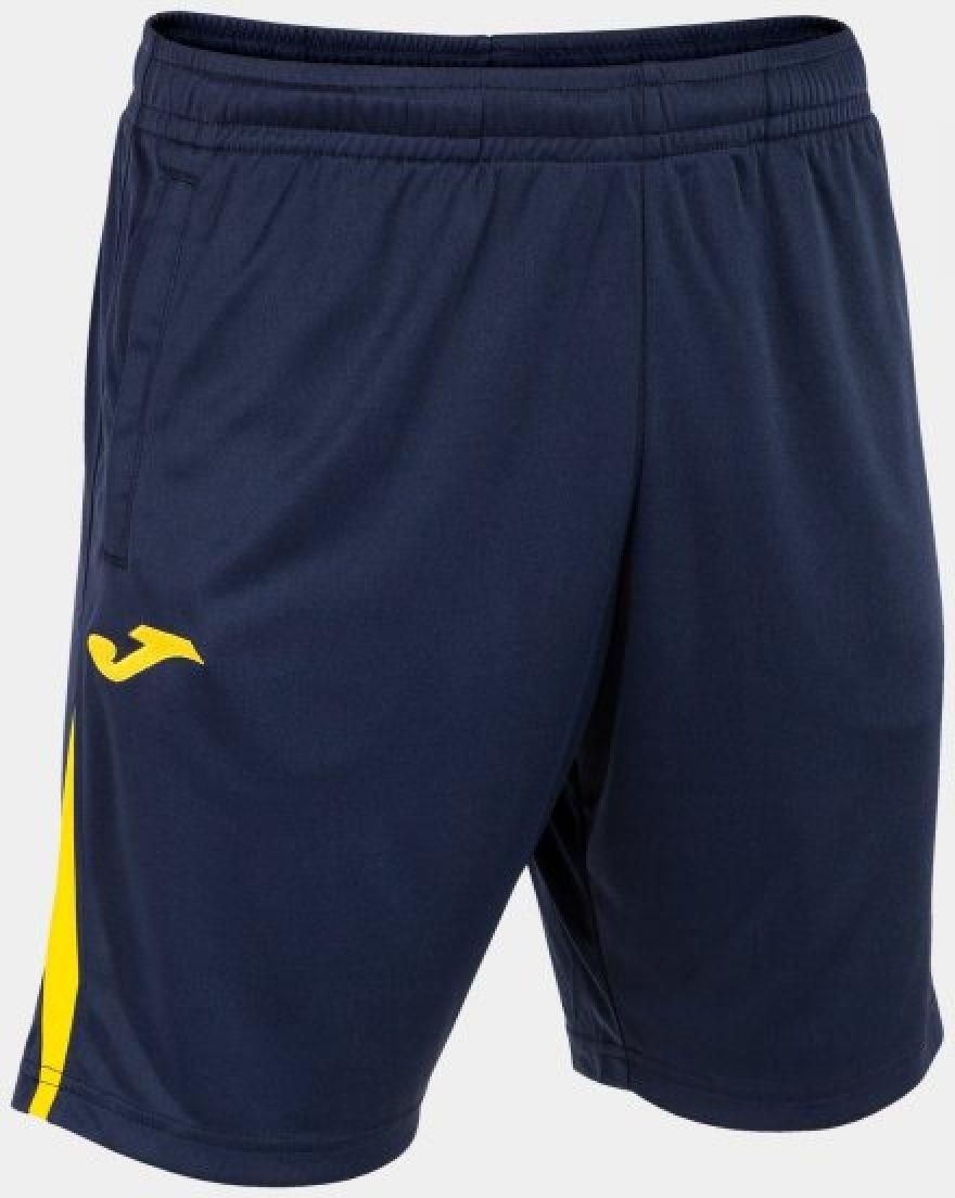 CHAMPIONSHIP VII BERMUDA NAVY YELLOW Właściwości Spodenki Joma dla mężczyzn i chłopców Talia elastyczna z wszytym sznurkiem Boczne kieszonki na zamek Lekka tkanina Kontrastowe wzory kolorystyczne Swoboda ruchów 100% Poliester