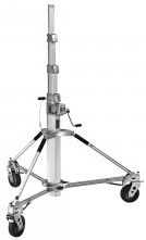 Avenger B7057FF (Long John Silver) | Stalowy statyw oświetleniowy z kółkami i hamulcami, wys. maks. 578 cm, udźwig 120 kg Statyw Avenger Long John Silver jest wykonany ze stali i składa się z pięciosekcyjnej kolumny z czteroma blokadami. To bardzo wytrzymały statyw, którego maksymalny udźwig wynosi 120kg, a jego wysokość to 578cm. Kółka pneumatyczne ułatwiają przemieszczanie statywu na trudniejszym terenie, natomiast regulowane nogi pozwalają na ustawienie go na nierównym podłożu. Wbudowany mechanizm korbowy pozwala na podnoszenie i opuszczanie sekcji statywu w bezpieczny i wygodny sposób. Maksymalna wysokość 578cm Udźwig 120kg Nogi o regulowanej długości Kółka pneumatyczne z hamulcami Wbudowany mechanizm korbowy Specyfikacja Avenger B7057FF (Long John Silver) Waga: 85 kg Wysokość Minimalna: 177 cm Wysokość Maksymalna: 570 cm Udźwig: 120 kg Mocowanie Górne: 1 1/8″ (28mm) gniazdo Pneumatyczne: Nie Udźwig Dla Maksymalnej Długości: 120 kg Długość Po Złożeniu: 224 cm Kolor: Srebrny Średnica Podstawy: 240 cm Przekrój Nogi: Okrągły Ilość Sekcji: 1 Górska Noga: 3 Materiał statywu: Stal Materiał Kolumny: Aluminium