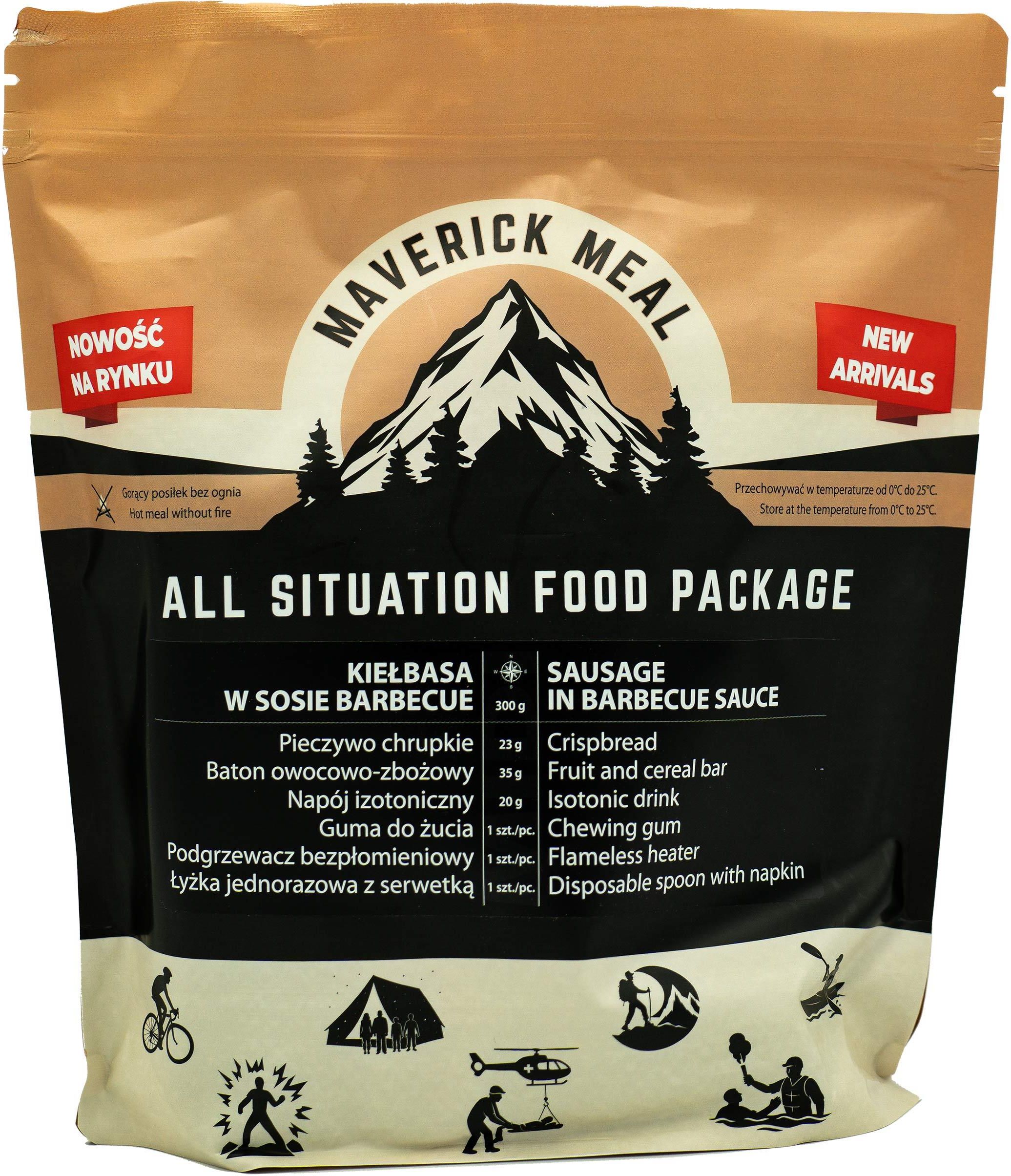 Racja żywnościowa dla jednej osoby zawierająca danie główne, przekąski oraz akcesoria niezbędne do odgrzania i spożycia posiłku. Dania Maverick Meal są sterylizowane w szczelnie zamkniętych opakowaniach, co pozwala na ich bezpieczne i długoterminowe przechowywanie bez potrzeby chłodzenia, przy jednoczesnym zachowaniu pełni smaku oraz wartości odżywczych.