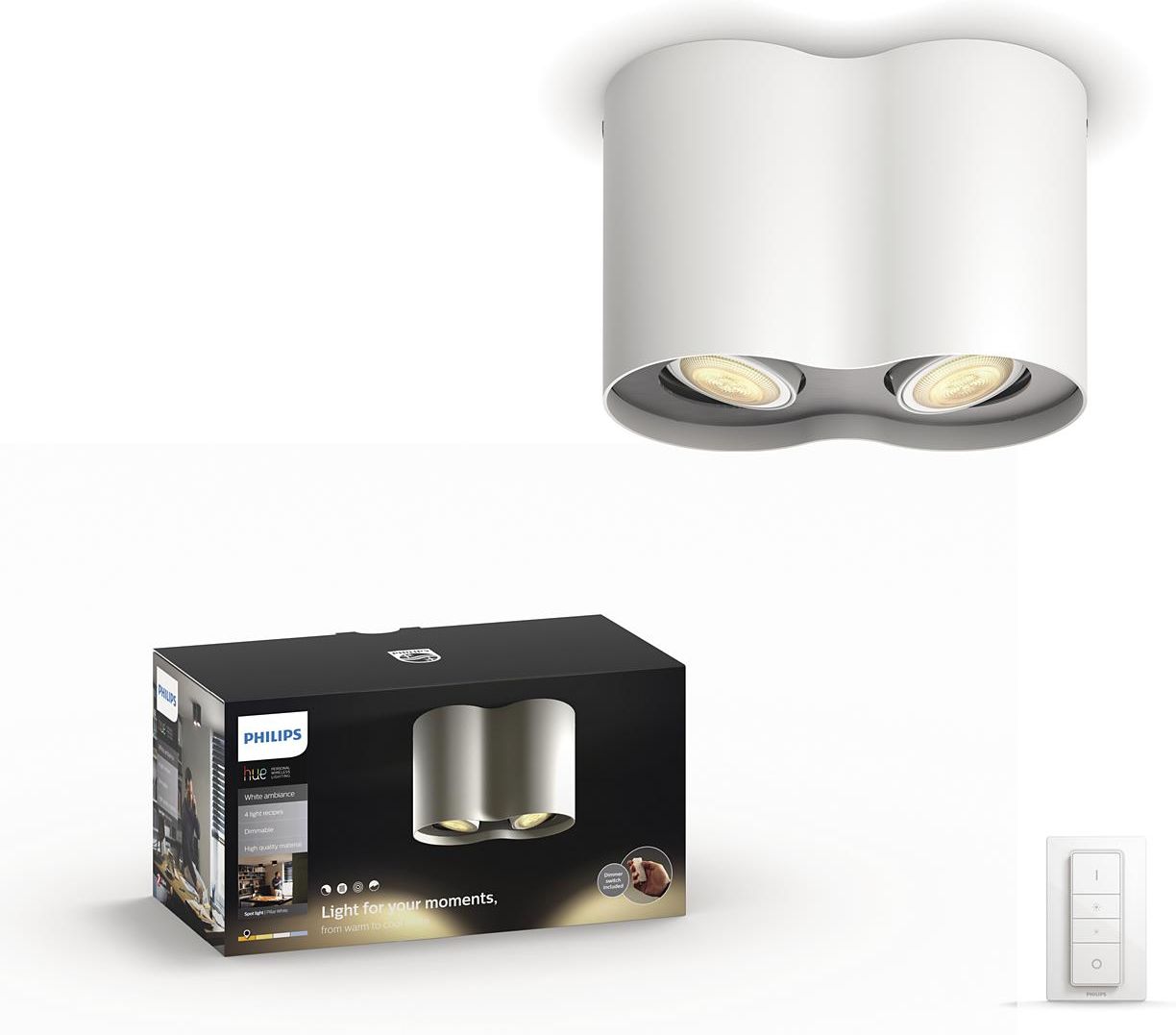 Philips Hue  oświetlenie Pillar Z emitującym białe nastrojowe światło reflektorem Philips Hue Pillar w systemie Philips Hue możesz cieszyć się naturalnym białym oświetleniem, które pomoże Ci się budzić, nabierać energii, koncentrować, czytać i odpoczywać. Wysokiej jakości reflektor stworzony z myślą o trwałości i dbałością o detale. Regulator przyciemniania w zestawie GU10 Inteligentne sterowanie dzięki mostkowi Hue* Biały Wysoka efektywność świetlna Wysokiej jakości światło z silnym strumieniem świetlnym zapewnia białe oświetlenie doskonałe na każdą porę dnia i do wykonywania każdej czynności. Łatwe, bezprzewodowe sterowanie za pomocą regulatora przyciemniania (w zestawie) Zasilany bateriami regulator przyciemniania Philips Hue pozwala na łatwe sterowanie białymi źródłami światła, zapewniając nastrojowe oświetlenie. Przełączanie pomiędzy 4 poziomami intensywności oświetlenia jest proste i odbywa się za naciśnięciem przycisku. Regulator przyciemniania można umieścić w dowolnym miejscu pomieszczenia za sprawą jego niewielkiej, eleganckiej stacji dokującej, natomiast samo urządzenie nie wymaga żadnych przewodów. Korzystaj z niego jak z pilota zdalnego sterowania lub zawieś na ścianie, aby cieszyć się sceną świetlną odpowiednią do każdej pory dnia. Pojedynczy regulator przyciemniania może sterować nawet 10 punktami świetlnymi Hue. Różne tryby oświetlenia: Relaks, Czytanie, Koncentracja i Energia Światło wpływa na nasz nastrój i zachowanie. Philips Hue może pomóc Ci zmienić codzienne czynności w chwile pełne przyjemności. Zamiast porannej kawy wybierz dzienne, chłodne, jasne światło białe, które zapewnia zastrzyk energii dla ciała i umysłu na cały dzień. Zachowaj skupienie dzięki odpowiednio dostosowanemu naturalnemu, jasnemu światłu białemu. Możesz też wyciągnąć się w fotelu i zrelaksować po długim dniu w otoczeniu delikatnie przyciemnionego światła białego. Stwórz wyjątkowy nastrój za pomocą wybranego koloru światła – od ciepłej bieli po jasne światło dzienne Stwórz wyjątkowy nastrój dopasowany do Twoich potrzeb i wykonywanych czynności. Poznaj wszystkie kolory białego światła – od mroźnego białego światła jak z zimowego pejzażu, po naturalne jasne oświetlenie przypominające wiosenny świt czy ciepłą biel zachodzącego letniego słońca. Budź się i zasypiaj w naturalny sposób Philips Hue pomaga wstać z łóżka w dobrym nastroju i w pełni wypoczętym. Stopniowo zwiększająca się jasność światła rozświetla sypialnię niczym wschód słońca. W naturalny sposób delikatnie wybudza domowników, zastępując hałaśliwe i nagłe wyrwanie ich budzikiem z głębokiego snu. Zacznij dzień na spokojnie, a wieczorem zrelaksuj się w otulającym, ciepłym białym świetle, powoli przygotowującym ciało do regenerującego snu. Do skorzystania z tej funkcji potrzebny jest mostek Philips Hue Bridge. Pełna kontrola zdalna kontrola dzięki mostkowi Hue Podłącz oświetlenie Philips Hue do mostka, aby korzystać z nieograniczonych możliwości systemu. Zdalne sterowanie, w domu i na zewnątrz Za pomocą aplikacji mobilnej Philips Hue (dostępna na systemu iOS i Android) można zdalnie sterować oświetleniem z dowolnego miejsca. Będąc poza domem, masz możliwość w każdej chwili sprawdzić, czy wyłączyłeś światło i z łatwością włączyć je na swój powrót. Do zdalnego sterowania oświetleniem konieczny mostek Philips Hue. Ustaw automatyczne harmonogramy włączania i wyłączania się światła Funkcja harmonogramu włączania i wyłączania się światła zapewni Ci wygodę, zarówno gdy jesteś jak i gdy nie ma Cię w domu. Możesz sterować oświetleniem zdalnie, ustawić automatyczne włączanie światła na Twój powrót do domu. Philips Hue to oświetlenie, które możesz całkowicie dostosować do swoich potrzeb – ustawienia światłą w każdym pokoju mogą być różne. Harmonogram wieczorny pozwoli na stopniowe przyciemnianie świateł, aż do całkowitego wyłączenia. Do korzystania z fukncjii automatyzacji oświetlenia niezbędny jest mostek Hue. Steruj światłem jak chcesz Podłącz oświetlenie Philips Hue do mostka i zacznij odkrywać niezliczone możliwości kontroli światła. Steruj oświetleniem za pomocą smartfonu lub tabletu przez aplikację mobilną Philips Hue lub skorzystaj z dedykowanych przełącznikóww obsługujących lampy i żarówki Hue. Ustawiaj zautomatyzowane harmonogramy świecenia, powiadomienia, alarmy i wiele innych funkcji, aby w pełni wykorzystać możliwości systemu Philips Hue. Philips Hue współpracuje takżę z technologiami Amazon Alexa, Apple HomeKit i Google Home, które umożliwiają sterowanie oświetleniem za pomocą głosu.