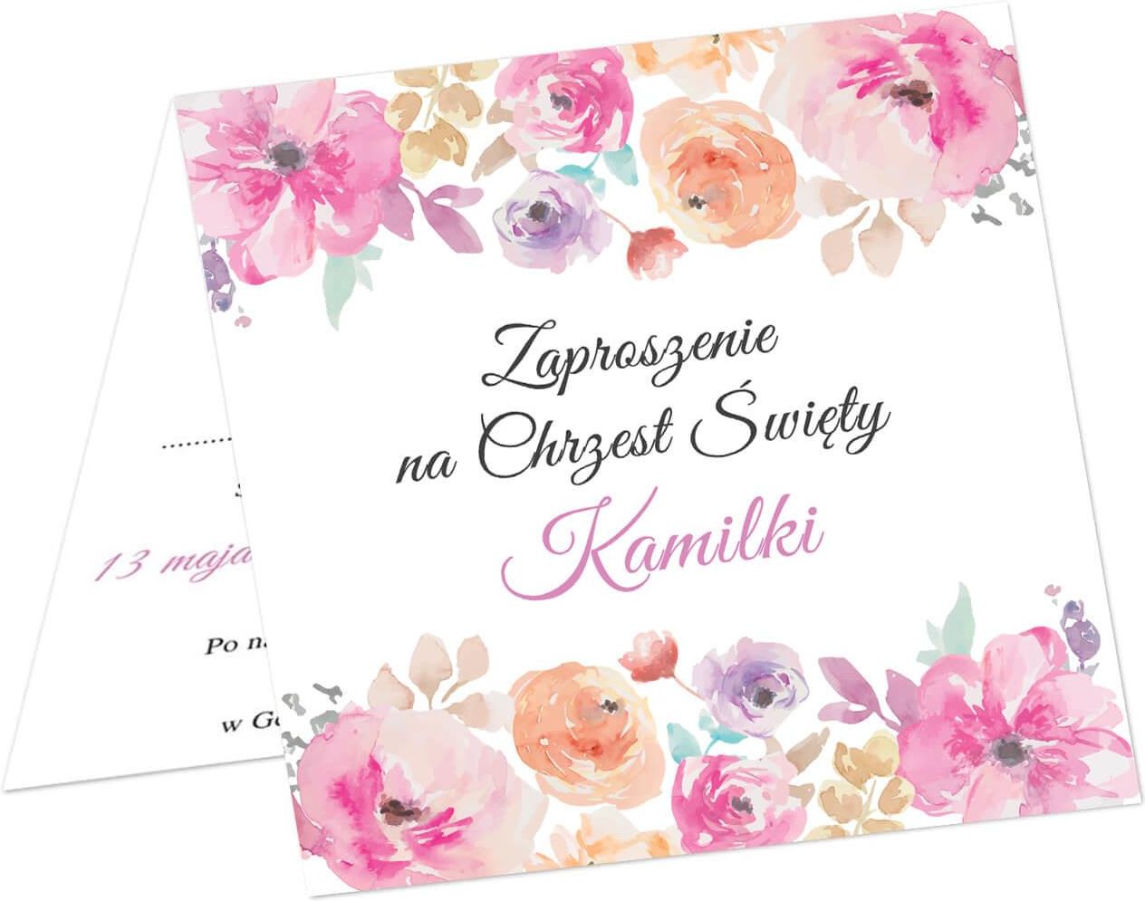 Zaproszenia personalizowane na chrzest dziewczynki. Wielkość: 10x14 cm. Opakowanie: 8 szt.