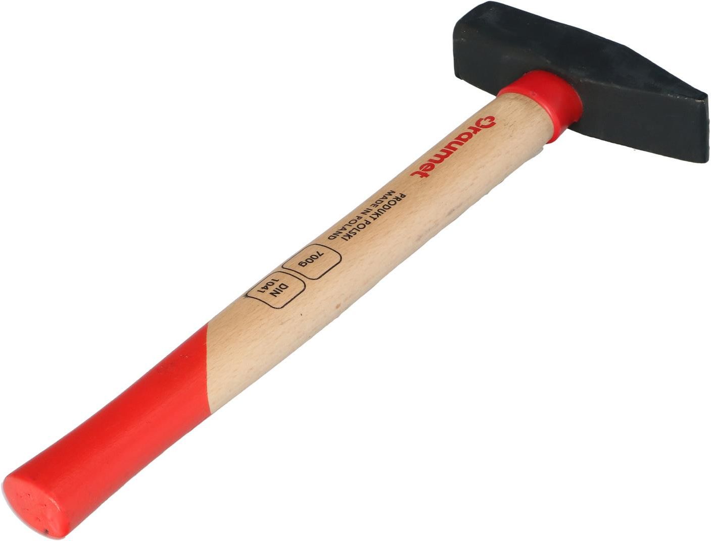 Młotek DRAUMET 700g to narzędzie wykonane z wysokiej jakości materiałów, zapewniające niezawodność i trwałość w trakcie intensywnego użytkowania. Część metalowa młotka jest kuta i szlifowana, co zapewnia precyzyjność oraz odporność na uszkodzenia. Dodatkowo, część robocza młotka została hartowana indukcyjnie, co zwiększa jej twardość i odporność na zużycie. Trzon młotka wykonany jest z wysokiej jakości drewna bukowego, co zapewnia komfort pracy i odpowiednią wytrzymałość. Parametry techniczne Waga: 700g – idealna waga do precyzyjnych prac, zapewniająca wygodę i efektywność. Materiał metalowy: Stal C55 o twardości 55HRC – gwarantuje wysoką trwałość i odporność na zużycie. Część robocza: Hartowana indukcyjnie – podnosi twardość i odporność na uszkodzenia mechaniczne. Trzon: Bukowy – wytrzymały, odporny na złamania, zapewniający wygodę i bezpieczeństwo użytkowania. Część metalowa: Kuta i szlifowana – poprawia precyzję i wydajność pracy. Zastosowanie Prace montażowe i konstrukcyjne: Młotek doskonale sprawdza się w pracach budowlanych, zarówno przy montażu konstrukcji drewnianych, jak i metalowych. Precyzyjne uderzenia: Dzięki odpowiedniej wadze i kształtowi, młotek jest idealny do precyzyjnych uderzeń w elementy metalowe i drewniane. Naprawy i remonty: Sprawdza się również w codziennych naprawach w domu, warsztacie, czy na budowie. Cechy produktu Wysoka jakość materiałów: Wykonany ze stali C55, młotek DRAUMET charakteryzuje się wyjątkową trwałością i odpornością na ścieranie. Hartowana część robocza: Indukcyjne hartowanie zapewnia wyższą twardość i długowieczność narzędzia. Ergonomiczny trzon: Trzon bukowy zapewnia komfort pracy i sprawia, że młotek jest wygodny w użytkowaniu, nawet podczas długotrwałych prac. Precyzyjne wykonanie: Kuta i szlifowana część metalowa młotka zapewnia wysoką jakość uderzeń i pozwala na efektywne prace w każdym warsztacie. Dlaczego warto wybrać młotek DRAUMET? Młotek DRAUMET 700g to niezawodne narzędzie, które wyróżnia się wysoką jakością wykonania oraz precyzyjnością. Dzięki hartowanej części roboczej, kutemu materiałowi i bukowemu trzonowi, młotek gwarantuje długotrwałą trwałość oraz wygodę użytkowania. To narzędzie, które z powodzeniem sprawdzi się zarówno w profesjonalnym warsztacie, jak i w codziennych pracach remontowych czy budowlanych.