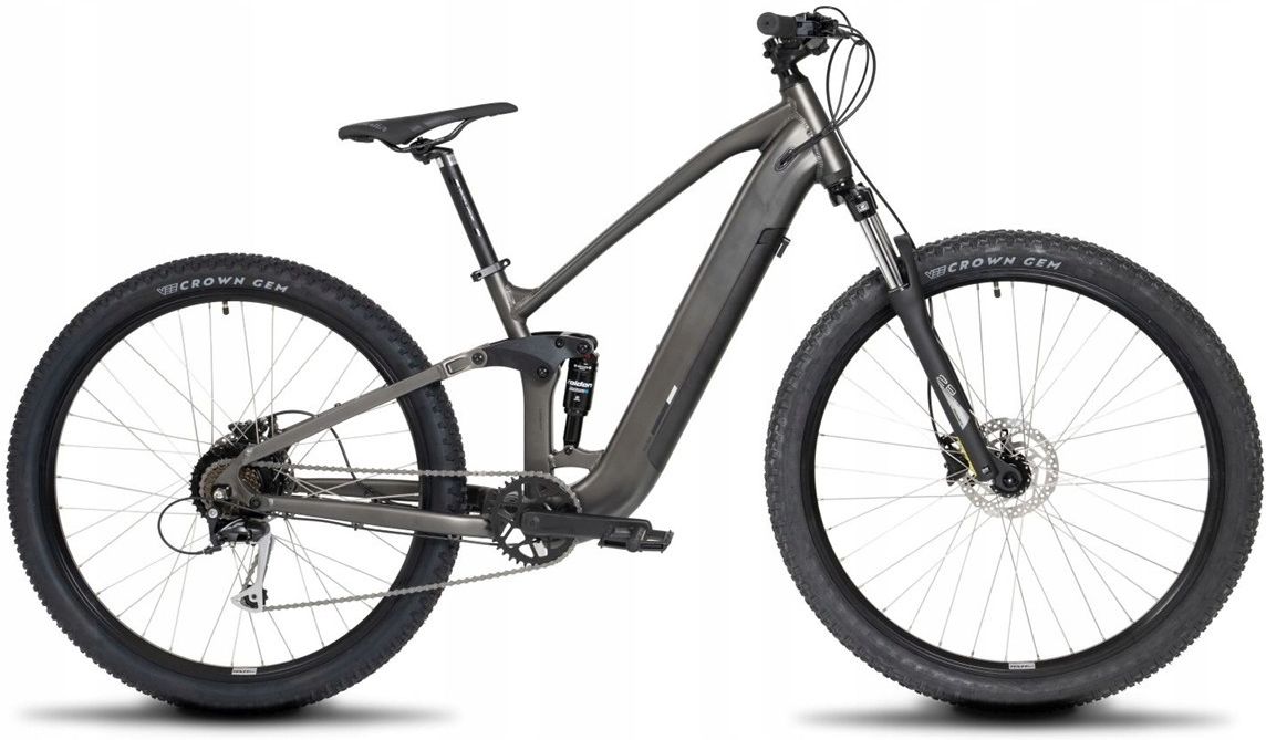 Proeco FS Grafitowy 29" 2026 Proeco FS Grafitowy 29" 2026 to nowoczesny rower górski typu MTB, który doskonale sprawdzi się zarówno na wymagających szlakach, jak i na leśnych ścieżkach. Zaprojektowany z myślą o entuzjastach jazdy terenowej, łączy niezawodność, komfort oraz zaawansowaną technologię, zapewniając niezapomniane wrażenia podczas każdej wyprawy. Dzięki pełnej amortyzacji, mocnemu silnikowi i solidnym komponentom, umożliwia eksplorację nawet najbardziej trudnych tras, gwarantując bezpieczeństwo i wygodę na każdym kroku. Silnik i moc – osiągi na najwyższym poziomie Podstawą skuteczności tego modelu jest potężny, 250-watowy silnik Ananda M131 zlokalizowany na tylnej piaście. Cichy, wydajny i wspierający na podjazdach, pozwala na pokonywanie każdej trasy z łatwością. Silnik generuje moment obrotowy aż 40 Nm, co zapewnia dynamiczne przyspieszenie i skuteczne wsparcie podczas jazdy pod górę czy w trudnym terenie. Dzięki temu można cieszyć się pełną kontrolą i płynnością jazdy, nawet w najbardziej wymagających warunkach. Pojemność baterii i zasięg – długi i komfortowy czas jazdy Duża pojemność baterii o pojemności 504 Wh gwarantuje długi zasięg, sięgający nawet do 100 km na jednym ładowaniu. To sprawia, że model ten jest idealny zarówno dla miłośników długich wycieczek, jak i do codziennych dojazdów czy terenowych wypraw. Zintegrowana bateria zapewnia estetyczny wygląd roweru oraz łatwość ładowania, co czyni go jeszcze bardziej funkcjonalnym. Zasięg jest oczywiście uzależniony od stylu jazdy, warunków terenowych i obciążenia, ale w każdym przypadku daje dużą swobodę i niezależność podczas eksplorowania różnych tras. Prędkość i system wspomagania – komfort i efektywność Rowery tego typu są wyposażone w system wspomagania pedałowania, który działa do maksymalnej prędkości 25 km/h, zgodnie z obowiązującymi przepisami. Dzięki temu jazda jest bardziej efektywna i mniej męcząca, co pozwala na dłuższe wycieczki bez obaw o szybkie zmęczenie. System wspomagania działa płynnie i łatwo go regulować, dostosowując poziom wsparcia do własnych potrzeb. To rozwiązanie sprawia, że zarówno początkujący, jak i doświadczeni rowerzyści mogą korzystać z pełni możliwości tego modelu. Konstrukcja i rozmiar – wygoda i dopasowanie Solidna rama wykonana z wysokiej jakości aluminium o rozmiarze 19 cali (ok. 48 cm) zapewnia optymalne dopasowanie do średniego wzrostu, gwarantując jednocześnie niską wagę roweru – zaledwie 26 kg. Regulowane elementy, takie jak siodełko i kierownica, umożliwiają dostosowanie pozycji jazdy do indywidualnych preferencji, co zwiększa komfort nawet podczas dłuższych wypraw. Siodełko Vader VD 1228-01 i aluminiowa sztyca o długości 350 mm pozwalają na łatwą regulację wysokości, zapewniając stabilność i wygodę na każdym terenie. Układ hamulcowy i opony – bezpieczeństwo w każdych warunkach Dla bezpieczeństwa jazdy zastosowano hamulce tarczowe hydrauliczne Shimano MT-200, które zapewniają skuteczne i niezawodne hamowanie niezależnie od warunków atmosferycznych. Tarcze o średnicy 160 mm gwarantują szybką reakcję i stabilność podczas jazdy z dużą prędkością. Koła o rozmiarze 29 cali, wyposażone w terenowe opony VeeTire Crown Gem 29x2.3”, zapewniają doskonałą przyczepność i stabilność na różnych nawierzchniach, od kamienistych ścieżek po błotniste szlaki. Dodatkowe funkcje i wyposażenie Model ten jest wyposażony w wyświetlacz LCD, który umożliwia kontrolę nad parametrami jazdy, takimi jak poziom wsparcia, przebieg czy stan baterii. Standardowe platformowe pedały zapewniają stabilne podparcie, a aluminiowa kierownica o szerokości 720 mm umożliwia precyzyjne kierowanie. Dodatkowo, rower posiada oświetlenie LED, które zwiększa widoczność podczas jazdy po zmroku, oraz sztycę i mostek aluminiowe, co podnosi trwałość i estetykę całości. Proeco FS Grafitowy 29" 2026 to wytrzymały, wszechstronny i nowoczesny rower górski, który sprosta oczekiwaniom zarówno do rekreacyjnej jazdy, jak i bardziej ambitnych wypraw terenowych. Dzięki wysokiej jakości komponentom, zaawansowanej technologii wspomagania oraz pełnej amortyzacji zapewnia komfort i bezpieczeństwo na każdym kroku, niezależnie od wybranej ścieżki.