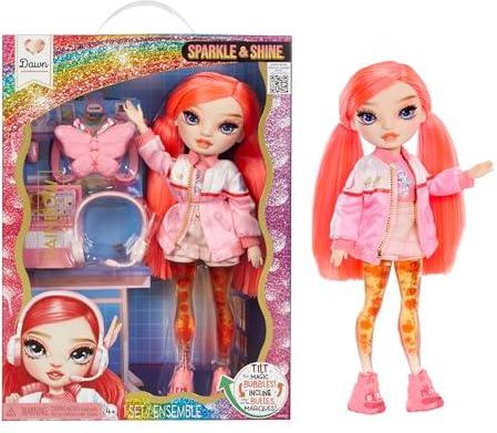 Rainbow High Sparkle & Shine Doll Dawn 28 Cm Modna Lalka z Czerwonymi Włosami i Magicznymi Bąbelkami w Nogach Czersk