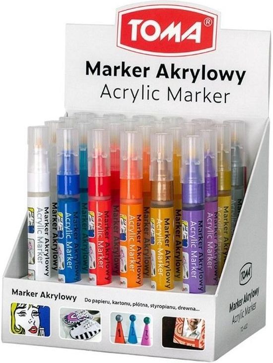 TOMA Marker Akrylowy MIX Marker akrylowy, kolor mix do: papieru, drewna, tkaniny, styropiany firmy Toma Czy masz duszę artysty ? Jeśli tak, to nie zabraknie Ci wyobraźni do czego użyć tych markerów. Masz pomysł na własny projekt graficzny na bluzce czy tenisówkach ? A może potrzeba Ci wyraźnego …