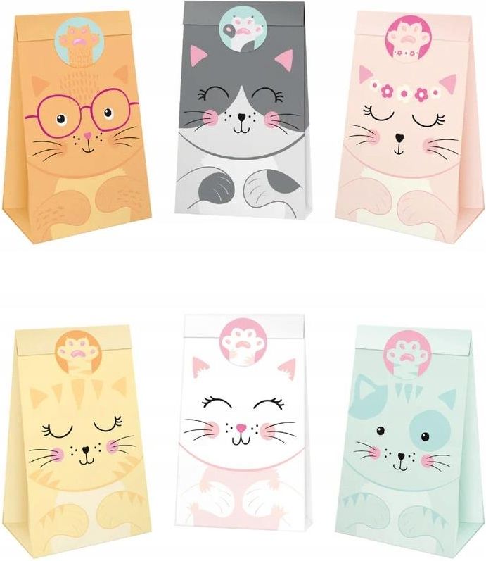 Torebki papierowe na cukierki Kotki Kotek mix 6 sztuk Urodziny Czersk