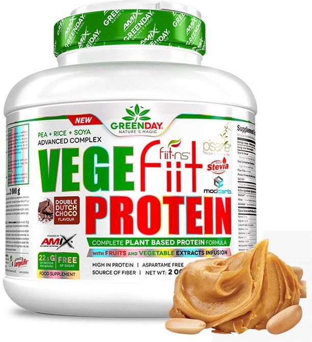 Amix GreenDay® Vegefiit Protein - 2000g ✔ 3 RÓŻNE ŹRÓDŁA BIAŁKA ✔ DODATEK EKSTRAKTÓW I KONCENTRATÓW OWOCÓW I WARZYW ✔ WZBOGACONY O BEZGLUTENOWE ŹRÓDŁA WŁÓKNA POKARMOWEGO ✔ DODATEK ENZYMÓW PROTEOLITYCZNYCH Wartość Odżywcza / Informacja Żywieniowa: Na 30 g Wartość Energetyczna (energia): 468 kJ / 110 …