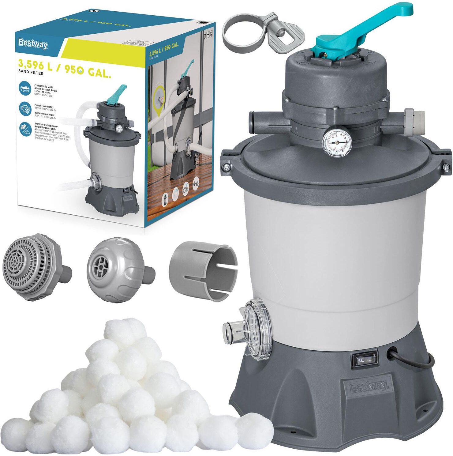 Pompa piaskowa do basenów ogrodowych 3596 l/h Bestway 58515 + kulki filtracyjne 1,5kg! skuteczna w filtracji wody - pompa piaskowa Bestway jest zaprojektowana do pracy zarówno z piaskiem kwarcowym (8,5 kg) jak i kulki filtracyjnymi (240 g), oba zapewniają wysoką wydajność filtracji, usuwając …