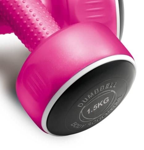 Hantle BW 108 marki Body Sculpture  są doskonałym elementem uzupełniającym trening mięśni rąk i górnych partii ciała. Nadają się do ćwiczeń fitness, ogólnorozwojowych i aerobiku. Niewielka waga sprawia, że idealnie przydadzą się nie tylko początkującym użytkownikom, ale też bardziej zaawansowanym sportowcom. Podczas treningu z małym ciężarem, całą pracę wykonują konkretne partie mięśni. Dzięki temu ćwicząc mniej narażasz się na kontuzje. Winyl którym pokryte są hantle, zabezpiecza je przed wilgocią i sprawia, że są przyjemniejsze w użytkowaniu. Pokryty wypustkami uchwyt zapewnia lepsze utrzymanie przedmiotu w dłoni. Dzięki temu trening jest bezpieczniejszy i bardziej komfortowy. Parametry techniczne: Wymiary: 22 x 8,5 x 8,5 cm (dł. x szer. x wys.) Kolor: różowy Waga: 2 x 1,5 kg Przeznaczenie: użytek domowy Gwarancja: 2 lata