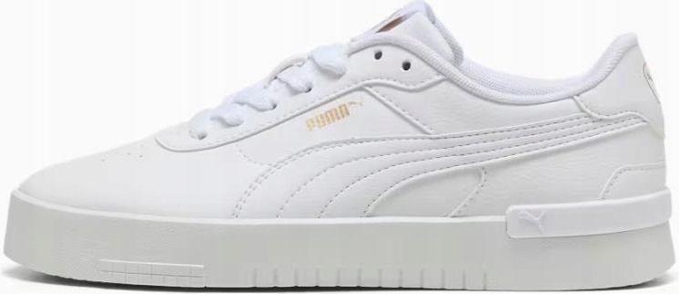Buty sportowe Puma JOLA Buty sportowe Jola marki Puma to stylowe buty inspirowane klasycznym tenisem, stworzone z myślą o nowoczesnym miejskim stylu. Ich niska sylwetka, syntetyczna cholewka i sportowy charakter sprawiają, że świetnie uzupełniają codzienne stylizacje. Dzięki technologii Softfoam+ z grubszą piętą zapewniają wyjątkową amortyzację i komfort przez cały dzień. Gumowa podeszwa gwarantuje przyczepność, a klasyczne sznurowanie i logo Puma dodają im charakteru. Wykonane w min. 20% z materiałów z recyklingu – to idealne połączenie mody, wygody i odpowiedzialności. Syntetyczna cholewka. Wkładka SoftFoam+ zapewniająca doskonałą amortyzację i komfort. Gumowa podeszwa zewnętrzna. Charakterystyczne detale Puma. Dlaczego wkładka SOFTfoam+ odniosła taki sukces? Masa memory foam to opracowana w laboratoriach NASA technologia, używana jako element konstrukcji siedzeń dla kosmonautów. Technologia, opracowana w 1966 roku, znalazła swoje zastosowanie w dzisiejszym przemyśle obuwniczym. Struktura wkładki składa się z dużych cząstek, które znajdują się w przestrzeniach wypełnionych specjalnym gazem. Ta kombinacja oznacza, że ​​podczas chodzenia lub biegania nacisk na stopę jest bardzo mały, a zatem - komfort noszenia butów jest nieporównywalny. Wkładki SOFTfoam + doskonale dopasowują się do kształtu gwarantując komfort na poziomie nigdy wcześniej nieosiągalnym. Doskonale elastyczna, jednocześnie zachowując odporność na trwałe odkształcenia. Ponadto minimalizuje zatrzymane ciepło i ma powłokę antyzapachową, która zapewnia chłód stopom.