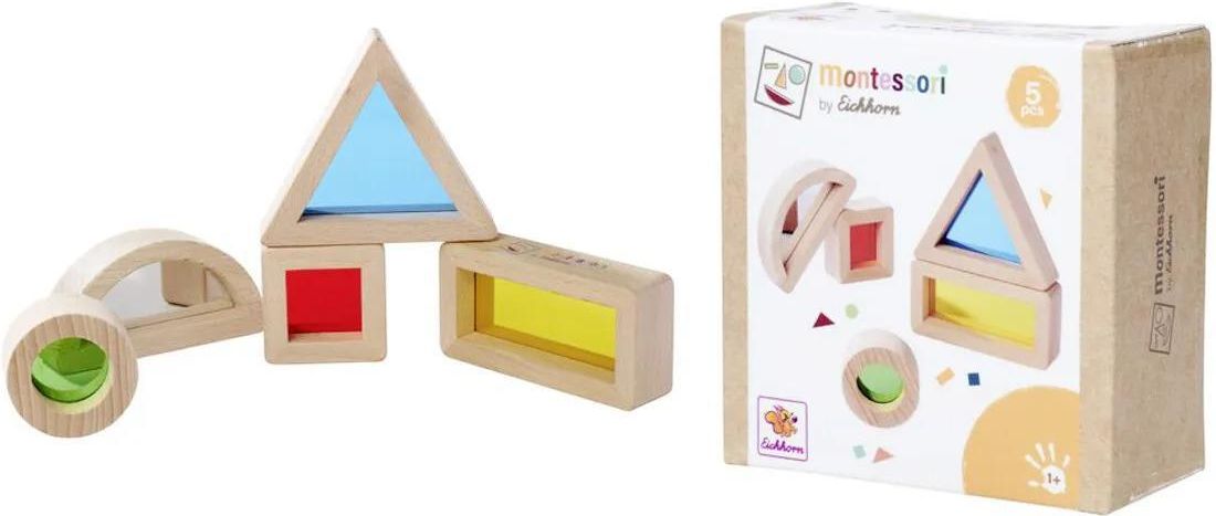 Klocki okienne Montessori, dostępne w pięciu różnych kształtach, to fascynujący widok. Wypełnione kolorowym szkłem akrylowym, zachęcają do eksploracji. Pozwala to dzieciom obserwować świat przez kolorową soczewkę. Klocek z... Montessori Klocki z okienkami: trójkąt, prostokąt, kwadrat, koło oraz półkole z lustrem, 5 elementów, FSC® 100%, buk, akryl, 12m+ Wysokość: 130 Szerokość: 130 Głębokość: 65.000000 Grupa wiekowa: 12m+ Isbn: 4003046011937 Rodzaj: Zabawki