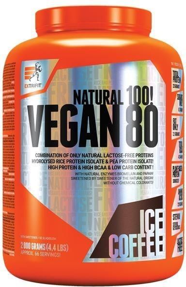 EXTRIFIT - Vegan 80 - 2000g - Ice Coffee Najwyższej jakości izolat białek roślinnych Vegan 80 marki EXTRIFIT! Zero laktozy, cukru i sztucznych wypełniaczy! Mieszanka białek ryżu i grochu. Doskonała uzupełnienie diety dla wegan i wegetarian. Aż 26 g czystego białka i ok. 5000 mg BCAA w porcji! …