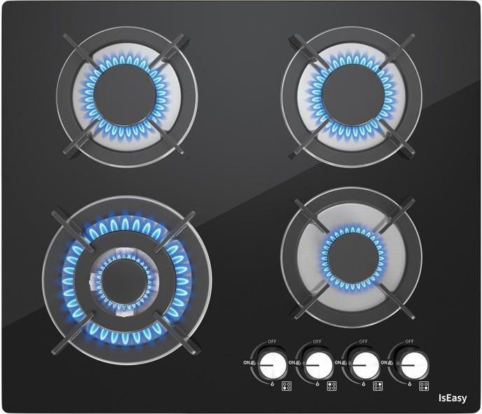 IsEasy MGBG-604B – Szklana Płyta Gazowa 4 Palniki, 60cm, Żeliwo, NG/LPG! Płyta gazowa szklana IsEasy MGBG-604B w Białej wersji kolorystycznej to eleganckie i nowoczesne rozwiązanie do każdej kuchni w Polsce. Łączy wysoką funkcjonalność czterech palników z najwyższą trwałością – panel wykonany jest z hartowanego szkła (8 mm), a ruszty z solidnego żeliwa. Płyta została zaprojektowana dla osób, które cenią nowoczesny wygląd, wygodę użytkowania i bezpieczeństwo. Dzięki zróżnicowanej mocy palników masz pełną swobodę w gotowaniu, od wolnego duszenia po szybkie smażenie. Funkcjonalność i Zróżnicowana Moc Palników 4 Palniki: Model wyposażony w cztery palniki do swobodnego przygotowywania różnorodnych dań jednocześnie. Układ Mocy: Palnik główny 3,3 kW (lewy dolny), dwa palniki średnie 1,75 kW (lewy i prawy górny) oraz palnik mały 1 kW (prawy dolny). Żeliwne Ruszty: Masywne ruszty z żeliwa gwarantują maksymalną stabilność każdego naczynia i są odporne na wysokie temperatury. Łatwość Czyszczenia: Panel z hartowanego szkła 8 mm jest odporny na zarysowania i bardzo łatwy do utrzymania w czystości. Bezpieczeństwo i Kompatybilność z Gazem Zabezpieczenie Przeciwwypływowe: Wbudowany zawór bezpieczeństwa z czujnikiem automatycznie odcina dopływ gazu, gdy płomień zgaśnie, chroniąc domowników. Rodzaj Gazu: Płyta przystosowana do pracy z gazem ziemnym (NG) oraz gazem płynnym (LPG). Odpowiednie dysze umożliwiają dopasowanie do Twojej instalacji. Wygodna Obsługa: Pokrętła z bakelitu są odporne na nagrzewanie i zapewniają precyzyjną i wygodną regulację płomienia. Automatyczny Zapłon: Szybki i niezawodny zapłon impulsowy (127–240 V). Specyfikacja i Wymiary (Model MGBG-604B) Wymiary produktu: 60 × 51 × 11,5 cm Wymiary wnęki montażowej: 56 × 48 cm Materiał panelu: Szkło hartowane 8 mm Materiał rusztu: Żeliwo Moc palnika 2: 3,3 kW Moc palnika 1 i 3: 1,75 kW Moc palnika 4: 1 kW Rodzaj gazu: NG / LPG IsEasy 60cm: Nowoczesny design szklany i żeliwne ruszty. Bezpieczne gotowanie w Twojej kuchni!