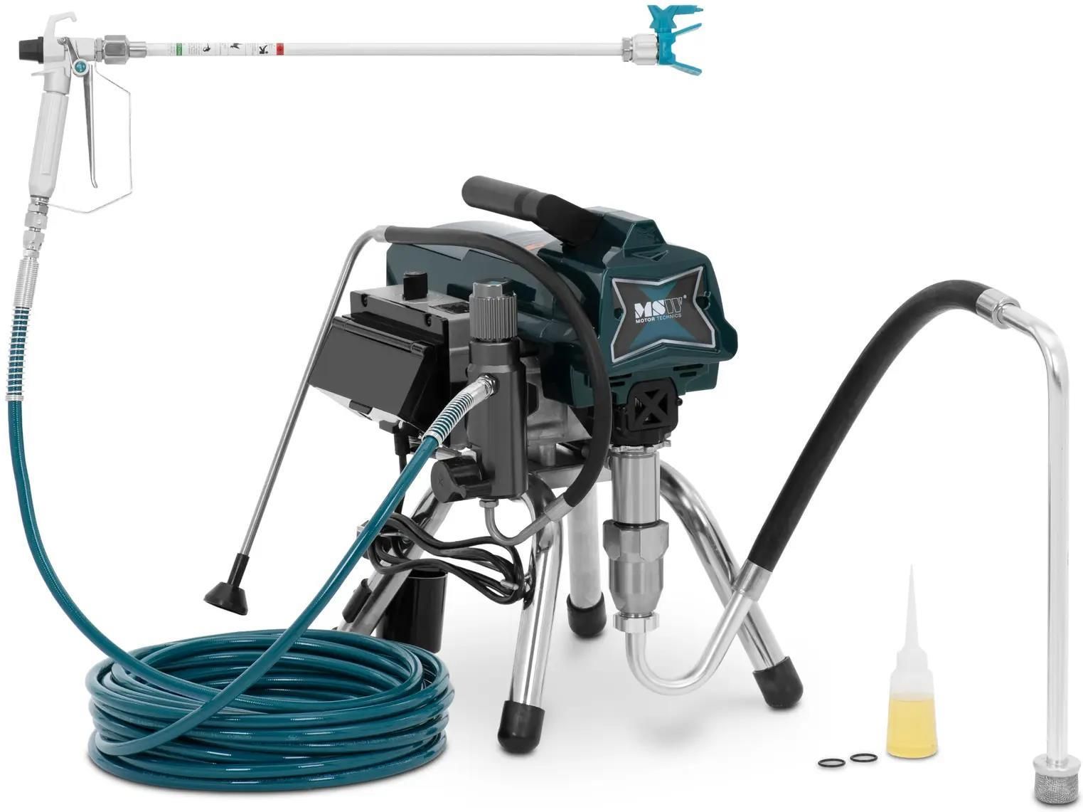 Dzięki agregatowi malarskiemu hydrodynamicznemu od MSW wielokrotnie przyspieszysz malowanie ścian. Kompaktowe urządzenie daje maksymalną kontrolę nad aplikacją i zapewnia profesjonalny efekt bez smug na ścianach domu lub pomieszczeń. Sprzęt obsłużysz bez problemów, a to za sprawą przełączników i pokręteł z czytelnymi symbolami. Dzięki temu agregat hydrodynamiczny nada się zarówno do projektów domowych, jak i profesjonalnych usług oraz prac malarskich. Wyposażony w duży filtr rozdzielający, agregat sprawdzi się doskonale nawet w przypadku większych cząstek i osadów w farbie. Jest to szczególnie przydatne w przypadku rozpylania lekko wyschniętych lub zanieczyszczonych cieczy. Niewymagający konserwacji, bezszczotkowy silnik o mocy 2600 W pracuje wydajnie z prędkością do 5000 obr./min i rozprowadza maksymalnie 3,2 litra farby na minutę w postaci delikatnej mgiełki. Za pomocą poręcznego pokrętła określisz ciśnienie, a tym samym nakładanie farby, aż do 227 barów. Dzięki temu dostosujesz maszynę w zależności od projektu, farby i pożądanego rezultatu. Lepsze osiągi oznaczają, że silnik będzie jeszcze wydajniejszy przy niskich i wysokich prędkościach. Ciągły pomiar ciśnienia automatycznie ustawi prędkość obrotową silnika, zapewniając w ten sposób stałe ciśnienie i równomierny strumień natrysku. Elastyczny wąż o długości 9 m zapewni dużą swobodę pracy. Dołączona przedłużka zadba o jeszcze większą elastyczność, a praktyczny uchwyt do przenoszenia ułatwi transport agregatu do malowania do miejsca użytkowania. Kompaktowy sprzęt nie zajmie wiele miejsca, co na pewno docenisz w czasie transportu oraz przechowywania do następnego projektu malarskiego. Dzięki zaawansowanej technologii wbudowana wysokociśnieniowa pompa tłokowa działa niezawodnie. Minimalizuje ona ryzyko zatorów i zapewnia równomierne nakładanie farby elewacyjnej czy podkładu. Wysokiej jakości tuleje oraz tłok i cylinder ze stali nierdzewnej zapewnią trwałość agregatu do malowania. Wydajność – agregat malarski hydrodynamiczny z przepływem 3,2 l/min jest idealny do przyspieszenia średnich i dużych prac malarskich Łatwa obsługa – w agregacie do malowania za pomocą poręcznego pokrętła ustawisz ciśnienie, a tym samym ilość dozowanej farby, a wąż o długości 9 m zapewni dużą swobodę ruchu Wszechstronność – agregat natryskowy nada się do nanoszenia farb elewacyjnych i lateksowych do wnętrz i na zewnątrz, a także do bejc i podkładów Lekkość – dzięki niewielkiej wadze i wbudowanemu uchwytowi do przenoszenia przetransportujesz agregat hydrodynamiczny do miejsca użytkowania Dobrze przemyślany – szybko i łatwo zdemontujesz, wyczyścisz lub wymienisz poszczególne elementy agregatu do malowania, więc jego utrzymanie będzie bardzo proste Przepływ: 3,2 l/min Ciśnienie: 227 bar Pompa tłokowa i filtr Łatwa obsługa za pomocą pokrętła Długość węża: 9 m