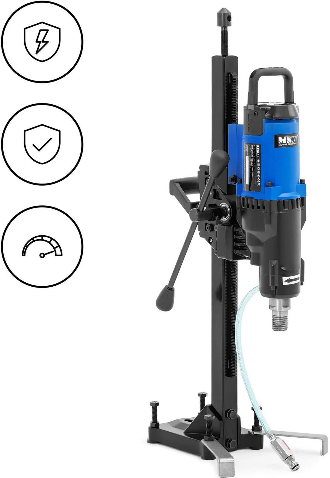 Wiertnica diamentowa pionowa do betonu kamienia ze statywem 750 obr./min 32 MSW Kod producenta: 10062619 Wiertnica do betonu marki MSW pozwoli wyciąć otwory w twardych materiałach budowlanych, takich jak beton, mur czy asfalt. Statyw wiertarski z szyną prowadzącą umożliwia wiercenie nawet dużych otworów o średnicy do 230 mm. Wiertnica diamentowa zapewnia moc 3200 W i maksymalną prędkość obrotową 750 obr./min. Statyw ze stabilną podstawą i prowadnicą pozwoli uzyskać precyzyjne wyniki nawet w twardych materiałach budowlanych. Aby to zrobić, należy przesunąć wiertnicę do betonu za pomocą dużej dźwigni, aby uzyskać równomierne przenoszenie mocy. Dodatkowo dla bezpieczeństwa przewód wyposażono w zintegrowany obwód zabezpieczający przed prądem różnicowym (PRCD – Portable Residual Current Device). Sprawdzi się on nawet w środowiskach o dużej wilgotności. Urządzenie posiada także zabezpieczenie przed przeciążeniem oraz wyłącznik bezpieczeństwa. Podczas wiercenia można polegać na niezawodnym chłodzeniu wodą. Złącze wykonane z wysokiej jakości kutej stali jest zintegrowane bezpośrednio z wiertarką rdzeniową. Zastosowanie wody znacząco ogranicza zużycie wiertła. Maszyna wymaga więc mniej konserwacji i ma dłuższą żywotność. Zmniejsza się również ilość pyłu powstającego podczas wiercenia, a wiertło rdzeniowe mniej się nagrzewa. Cechy produktu - Silnik wiertnicy do betonu imponuje mocą 3200 W i nadaje się do twardych materiałów budowlanych, - Dzięki solidnemu statywowi z prowadnicą wiertnica rdzeniowa może wiercić otwory o średnicy do 230 mm, - Prędkość 750 obr./min zapewnia optymalne wyniki przy użyciu diamentowego wiertła koronowego, nawet w przypadku dużych otworów w twardych materiałach, - Wiertnicę elektryczną można wykorzystać do wiercenia na sucho lub na mokro dzięki podłączeniu do wody, co zmniejsza wytwarzanie ciepła i pyłu, - Diamentowa wiertnica do betonu jest wyposażona w zabezpieczenie przed przeciążeniem, a przewód ma zintegrowany wyłącznik różnicowoprądowy (PRCD) zapewniający bezpieczną pracę. Parametry techniczne - Nr katalogowy - 10062619 - Stan artykułu - Nowy - Model - MSW-OOC-3200TPC - Materiał - Aluminium, Stal,PA6/GF30 - Kolor - Czarny, Czerwony - Napięcie [V] - 220 - Moc [W] - 3200 - Maksymalna średnica wiercenia [mm] - 230 - Prędkość obrotów [obr./min] - 750 - Moduł zabezpieczający PRCD na kablu - Tak - Przełącznik sterujący - Tak - Zabezpieczenie przed przeciążeniem - Tak - Długość przewodu [cm] - 226 cm - Wymiary (DxSxW) - 19.5 x 31 x 109 cm - Waga - 17.8 kg - Wymiary wysyłki (DxSxW) - 88.5 x 35.5 x 23 cm - Waga wysyłki - 21.3 kg W zestawie - Wiertnica do betonu - Statyw z prowadnicą - Wąż wodny - 2 szczotki węglowe - 2 klucze (32 / 36 mm 17 / 19 mm) - Akcesoria montażowe Kod producenta: 1023410 Grupa asortymentowa: Narzędzia Marka: MSW Koszty dostawy: 19,9 Czas wysyłki: Standardowo 1 dzień roboczy. Zamówienia złożone przed 8:00 najczęściej wysyłane są tego samego dnia. Zamówienia między 8:00 a 10:00 – wysyłka tego samego lub następnego dnia, zależnie od produktu i dnia tygodnia. Zamówienia po 10:00 – najczęściej następnego dnia roboczego. Czas dostawy (szacowany): 1 dzień roboczy od wysyłki Metody dostawy: Kurier Klasa przesyłki: Standard Oznaczenie wewn.: GC5 DST (ozn. wewn.): EX Producent odpowiedzialny: expondo GmbH, Dessauer Str. 28-29, 10963, Berlin, DE Osoby odpowiedzialne: expondo GmbH, Dessauer Str. 28-29, 10963, Berlin, DE EAN: 4062859239884 Gwarancja producenta: 2 lata