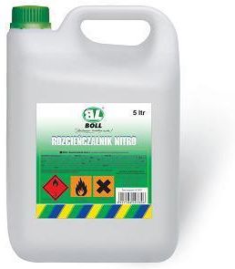 BOLL - rozcieńczalnik rozpuszczalnik nitro - 5L 0030032 Opis produktu Do prac związanych z rozcieńczaniem różnego rodzaju klejów, lakierów czy mas uszczelniających, sprawdza się rozpuszczalnik Nitro, o niskiej zawartości siarki, łatwo dostępny w naszym sklepie, sprzedawany w półlitrowych pojemnikach. Rozpuszczalnik Nitro jest starannie opracowaną mieszaniną związków organicznych, ich właściwości poprawiają rozlewność lakieru, w trakcie oraz po ukończeniu prac, z wykorzystaniem tego płynu, należy wietrzyć pomieszczenia, aż do ulotnienia się specyficznego zapachu. Właściwości fizyczne Kolor: Bezbarwny Zapach: Rozpuszczalnik Temperatura wrzenia przy ciśnieniu atmosferycznym: 77 - 125 C Prężność par 20 C: 14635 Pa Gęstość 20 C: 830 kg/m³ Gęstość względna 20 C: 0,83 Temperatura zapłonu: 4 C Temperatura samozapłonu: 400 C Zastosowanie profesjonalne Produkt przeznaczony do użytku profesjonalnego. Przeznaczony do rozpuszczania lakierów i emalii oraz mycia sprzętu malarskiego po zakończonym malowaniu.