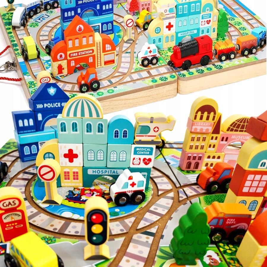 OGROMNA DREWNIANA KOLEJKA ELEKTRYCZNA TORY POCIĄG + PLANSZA KLOCKI MIASTO ZESTAW W WALIZCE Kolorowa drewniana kolejka jest ponadczasowa, uniwersalna i inspirująca do wielu godzin wspanialej i kreatywnej zabawy. W ZESTAWIE Drewniana walizka 2w1, wewnątrz walizki mieści się cały zestaw klocków, …