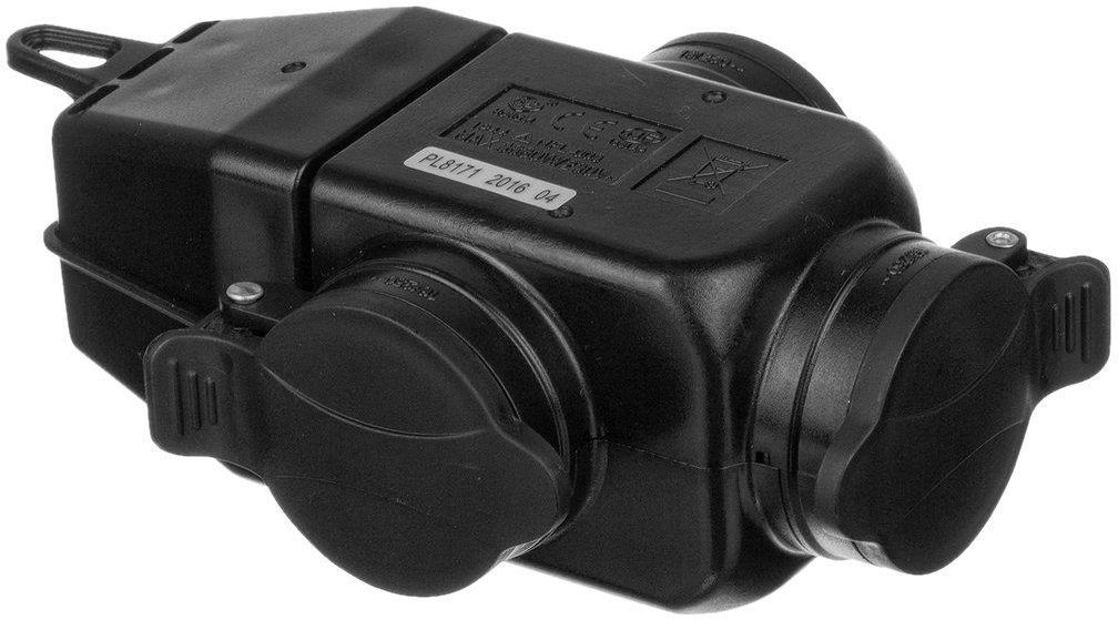 Funkcjonalny trójgniazdowy rozgałęźnik zasilania. Po montażu na przewodzie zasilającym pozwala na podłączenie 3 urządzeń. Gniazdo wykonane z najwyższej jakości materiałów. Gniazdo elektryczne potrójne, hermetyczne, bryzgoszczelne IP44. Używane jako zakończenie przewodu elektrycznego oraz jako element połączeniowy z wtykiem elektrycznym. Dane techniczne: rodzaj: rozgałęźnik ilość gniazd: 3x 2P+Z kolor: czarny napięcie znamionowe: 250V prąd znamionowy: 16A uziemienie: 3x tak klasa szczelności: IP 44 rozgałęźnik przeznaczony do przedłużacza Zastosowanie: Przeznaczony do instalowania w łazienkach, piwnicach, czy też na strychach. Wykonany z tworzywa o właściwościach termoplastycznych (nie przywiera do szkła, metali oraz do innych tworzyw)