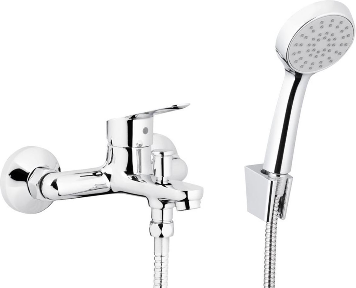 KFA SPARC CHROM bateria wannowa z natryskiem punktowym 5414-510-00 Dane techniczne Kolor: chrom Montaż: 2-otworowy Typ: ścienna Materiał: mosiądz Element sterujący: regulator ceramiczny Ø35 Napowietrzacz: Neoperl M24x1 Przepływ wody [l/min]: 24 /13 Ciśnienie robocze [atm]: 3 Temperatura wody [°C] maks.: ≤90/65 Grupa akustyczna: II Wylewka: stała Długość wylewki [mm]: 144 Rozstaw przyłączy [mm]: 150 +/ 15 Długość węża [mm]: 1500 Materiał węża: metalowy Ilość strumieni rączki natrysku: 1 Opakowanie zawiera: mimośrody (2 szt.), rozety z uszczelkami (2 szt.), rączka 1-funkcyjna, uchwyt ścienny przegubowy, wąż w oplocie (1,5 m). Kolekcja SPARC łączy elegancki, nowoczesny design z przystępną ceną. To sprawdzona jakość w ekonomicznym wydaniu. Idealne rozwiązanie dla osób szukających trwałych baterii, które spełnią oczekiwania zarówno pod względem estetyki, jak i budżetu. SPARC to kolekcja bez kompromisów: w dobrej cenie zapewnia trwałość i komfort na lata. Dlaczego warto oferować kolekcję sparc? Funkcjonalność – natrysk przesuwny z regulowanym rozstawem, baterie ścienne umywalkowe oraz kuchenne. Ekonomia – produkty wysokiej jakości w dobrej cenie.
