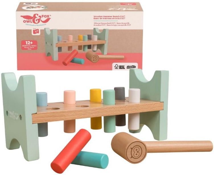 Owl & Fox Drewniana Ławeczka Do Wbijania Z Młotkiem Zabawka Montessori Czerwionka-Leszczyny
