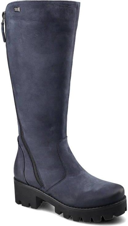 Kozaki damskie Simen, ze skóry naturalnej i ocieplane ciepłym futerkiem, granat S1680, 8421