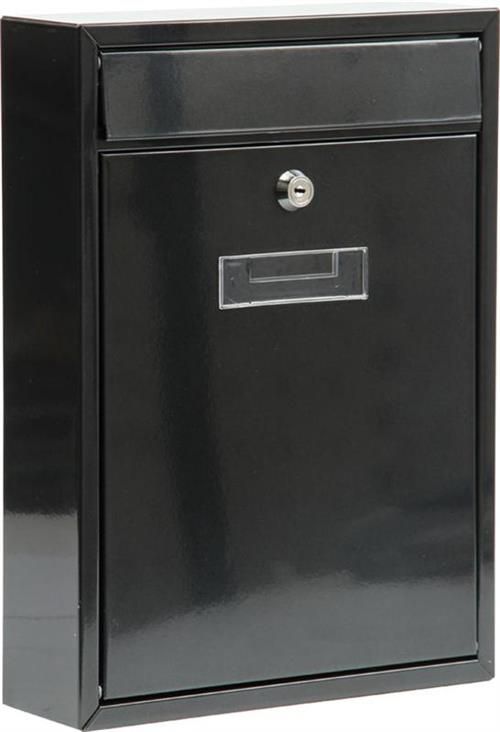 Skrzynka na listy o wymiarze 380x320x105mm. Wykonana z blachy stalowej o grubości 0,6mm, galwanizowanej w kolorze czarnym. Skrzynka posiada otwór wrzutowy z przodu z pokrywką zabezpieczającą. Frontowa strona posiada panel wykonany z tworzywa sztucznego z możliwości umieszczenia plakietki …