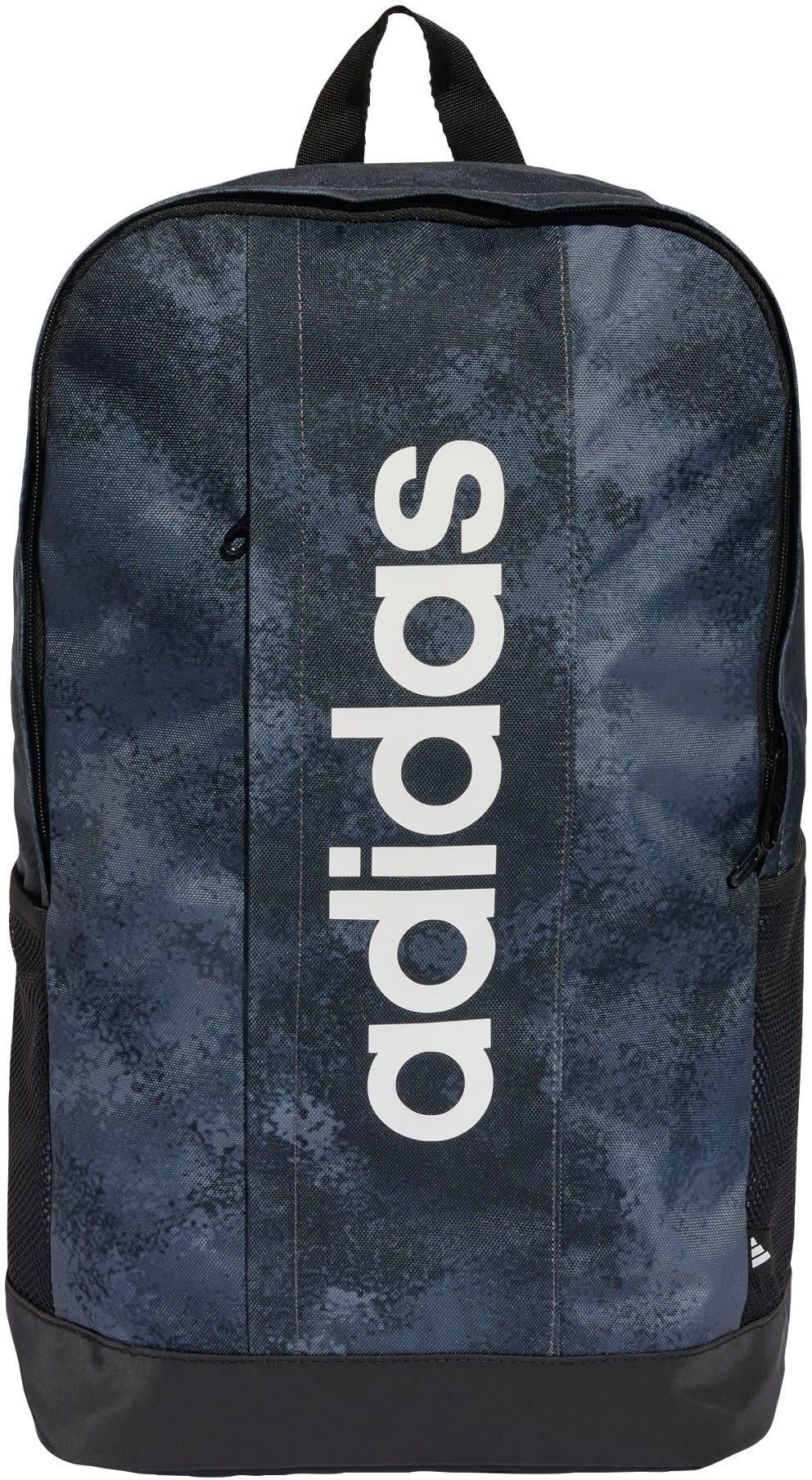 Plecak sportowy adidas to ważne akcesorium dla każdego ucznia ceniącego funkcjonalne rozwiązania ułatwiające przenoszenie podręczników, zeszytów, stroju na wf, piórnika czy innych rzeczy. Poza tym model z nowoczesną grafiką wybierany jest osoby aktywne lub planujące krótkie wycieczki. Plecak posiada zamek błyskawiczny otwierany w dwóch kierunkach, co znacznie ułatwia dostęp do zawartości. Dwie, boczne kieszonki z siateczki to odpowiednie miejsce dla butelki z wodą lub bidonu. Frontowa kieszeń stworzy praktyczną przestrzeń dla drobiazgów, które chcesz mieć w zasięgu ręki. Konstrukcja z wyściełanymi, regulowanymi szelkami pozwala odciążyć kręgosłup przy zachowaniu optymalnego dopasowania do sylwetki. Natomiast jeśli podczas krótkich dynastów wolisz przenosić plecak w dłoni złap za górny uchwyt. Powlekany, łatwy w czyszczeniu spód jest solidnym wzmocnieniem podatnych na przetarcia stref i jednocześnie zabezpiecza zawartość plecaka przed zawilgoceniem. Dane techniczne:· Wymiary: 46,5 x 27,5 x 16 cm· Pojemność: 23,32 l· Materiał: 100 % poliester z recyklingu