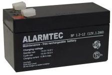 Akumulator Alarmtec serii BP 12V 1,2 Ah Przeznaczenie Seria BP wykonana w technologii AGM (Absorbed Glass Mat) posiada elektrolit wchłonięty w separatory z włókna szklanego o wielkiej porowatości, znajdujące się między płytami. Akumulatory AGM maja niską rezystancję wewnętrzną, co oznacza wyższe napięcie na zaciskach i dłuższy czas pracy.