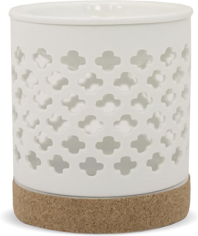KOMINEK ZAPACHOWY CERAMICZNY DO OLEJKÓW WOSKU PREZENT AROMATERAPIA 11 CM Kominek zapachowy z ażurowym wzorem – subtelna dekoracja i odprężający aromat Elegancki design – delikatny, ażurowy wzór w kształcie kwiatowych rozet nadaje kominkowi wyjątkowego uroku. Ciepłe światło – po zapaleniu tealighta światło przenika przez otwory, tworząc nastrojowy efekt. Naturalna podstawa z korka – zapewnia stabilność i chroni powierzchnie przed nagrzewaniem. Ceramiczna konstrukcja – trwała, estetyczna i łatwa do czyszczenia. Idealny do aromaterapii – używaj z ulubionymi olejkami lub woskami zapachowymi. Wprowadź do wnętrza zapach i blask, które otulą Cię spokojem każdego dnia. Specyfikacja Elegancki kominek Materiał: ceramika szlachetna Szerokość: 9,5 cm Wysokość: 11 cm Kolor: biały, brązowy Materiał: ceramika + korek Kolor: biały Styl: boho, skandynawski, minimalistyczny Zastosowanie: do wosków zapachowych i olejków eterycznych