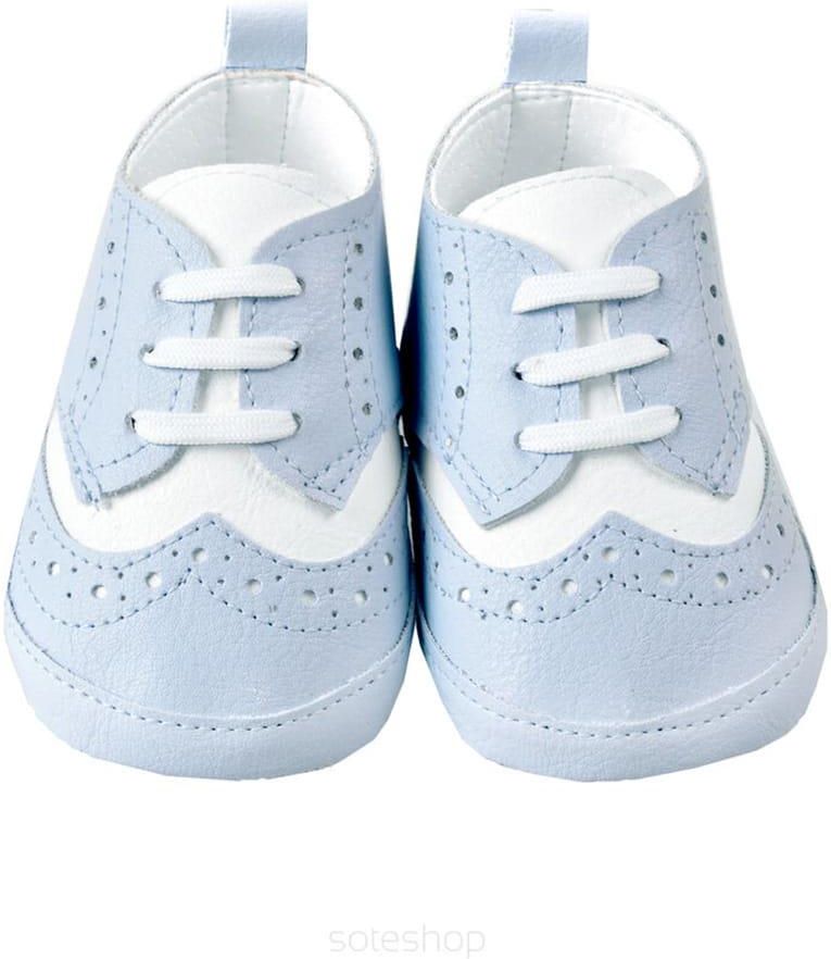 Stylowy buciki chłopięcę doskonale sprawdzą się podczas takich uroczystości jak na przykład Chrzest Święty. Model dostępny jest w kolorze błękitno-białym.Buciki chłopięce wiązane z zamszu i skóry.Produkt pochodzi od zaufanego polskiego producenta.