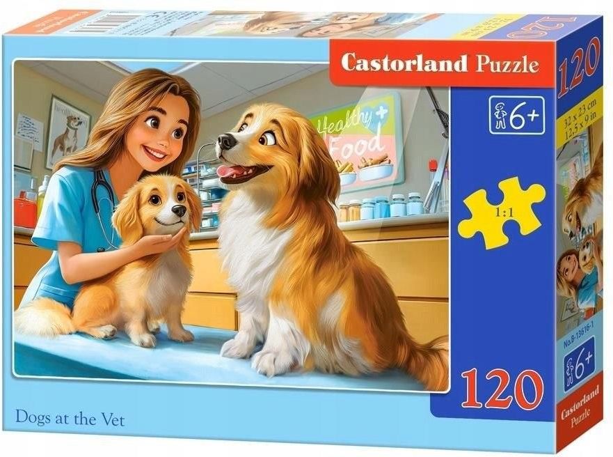 Puzzle 120 elementów Pieski u Weterynarza Psiaki Castorland 6+ Układanie puzzli to twórcza rozrywka bez względu na wiek. Rozwija spostrzegawczość, uczy wytrwałości i ćwiczy koncentrację. Jest wyzwaniem, z którym można zmagać się w pojedynkę lub w większym gronie. Starannie dobrane wzornictwo, doskonała jakość oraz cenne walory dydaktyczno-wychowawcze to niewątpliwe atuty puzzli klasycznych, dzięki którym marka Castorland jest znana i ceniona w ponad 40 krajach. Puzzle dedykowane dzieciom powyżej 4 roku życia. Wymiar obrazka po ułożeniu: 32×23 cm