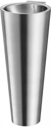 umywalka na postumencie, wysokość 830 mm wewnętrzna średnica umywalki: 310 mm prawdziwy element dekoracyjny inox 304 bakteriostatyczny wykończenie satynowe grubość Inoxu: 0,8 mm wykończenie z ochroną przed skaleczeniem bez otworu na armaturę dostarczana z korkiem 1¼″. Bez przelewu dostarczana z mocowaniami znak CE. Produkt zgodny z normą PN-EN 14688 kolor: inox satynowy