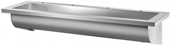 umywalka zbiorowa mocowana na ścianie, 4 stanowiska - 2400 mm bakteriostatyczny Inox 304 wykończenie satynowe grubość Inoxu: komora 0,8 mm, ranty oraz wsporniki kątowe 1,5 mm łatwa instalacja: brak konieczności instalacji maskownic łączeń, umywalka jest lekka możliwość zainstalowania armatury …