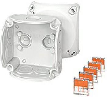 Puszka odgałęźna z dławnicami membranowymi + 5 zacisków COMPACT wago Dane techniczne: 84x84x55 mm z dławnicami membranowymi ze zintegrowanymi dławnicami membranowymi (zakres uszczelniania Ø 6,0-15,0 mm) - można je usunąć i zastąpić dławnicami skręcanymi ze zintegrowaną dławnicą membranową w spodzie puszki (zakres uszczelniania Ø 6,0-13,0 mm) plombowanie pokrywy bez dodatkowych akcesoriów uchwyty do mocowania puszki w komplecie kolor: szary, RAL 7035