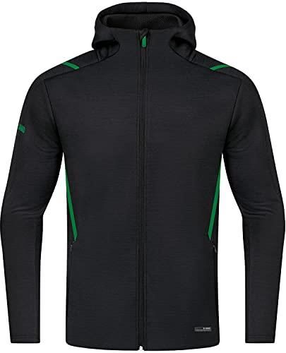 JAKO Unisex dziecięca kurtka rekreacyjna Challenge z kapturem, kurtka rekreacyjna Challenge z kapturem czarny melanż/sportowy zielony 128 Częstochowa