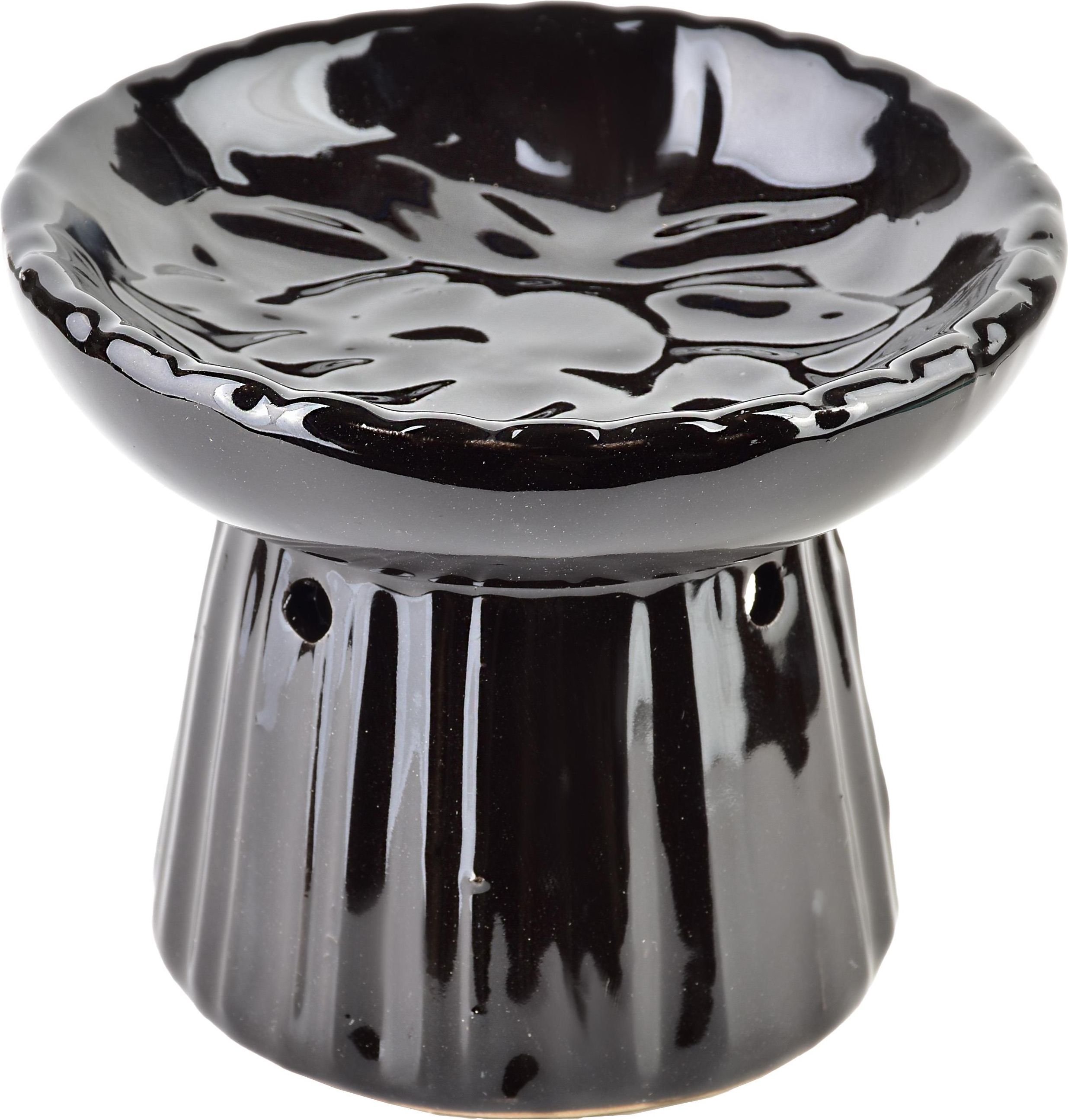 Kominek zapachowy ceramika czarny 11x8x8,5 HTTP1625Rozmiar: 11x8x8,5 Kolor: czarnyMateriał: ceramika OPIS: Duży ceramiczny kominek na olejek zapachowy to elegancki i praktyczny dodatek, który doskonale wpasuje się w każde wnętrze. Wyróżnia się okrągłą, dużą misą w górnej części, przeznaczoną na wodę z olejkiem, co zapewnia dłuższe i bardziej równomierne uwalnianie zapachu. Wykonany z solidnej ceramiki, waży 342 g, co nadaje mu stabilności i trwałości. Jego konstrukcja jest idealnie dopasowana do świeczek typu tealight, które w dolnej części kominka równomiernie podgrzewają wodę z olejkiem, tworząc przytulną atmosferę pełną relaksujących aromatów. Dzięki swojemu rozmiarowi i estetycznemu designowi, ten kominek jest nie tylko funkcjonalnym akcesorium do aromaterapii, ale również dekoracyjnym elementem, który świetnie dopełni aranżację wnętrza. To doskonały wybór do salonu, sypialni czy łazienki, idealny zarówno do użytku codziennego, jak i na specjalne okazje.wymiar: 11x8x8,5cm waga: 342g zapakowany w brown box