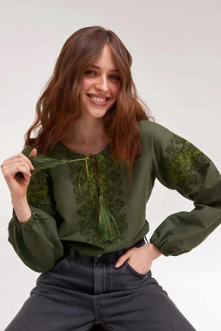 Koszula Bluzka Haftowana Ukraińska Bawełna Zielona Khaki L Częstochowa