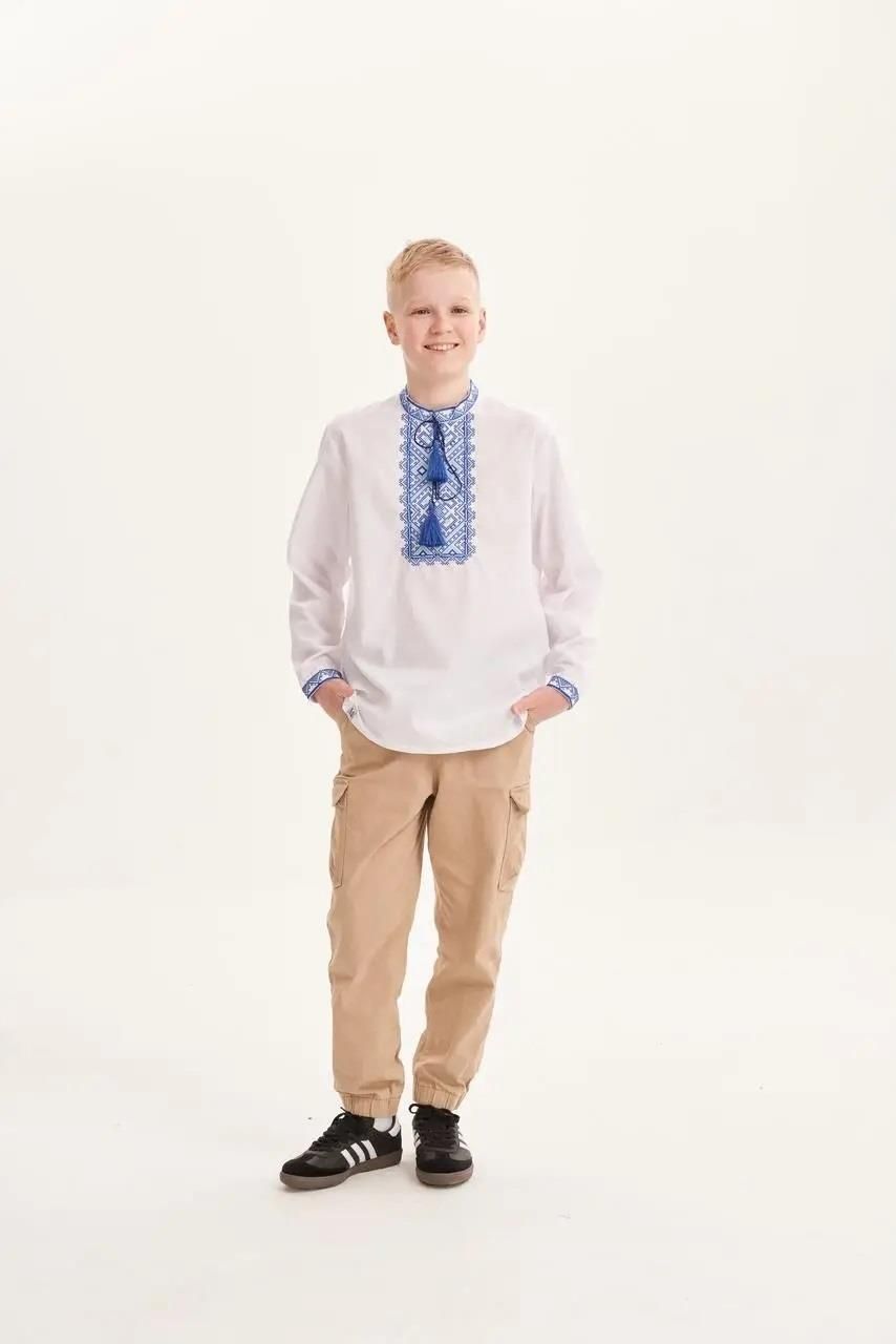 Koszula dla chłopaka z jakościowej bawełny, wykonana bardzo starannie i stylowo. Wygodny krój, piękny haftowany wzór. Haft maszynowy wysokogatunkowy - nie "sciąga się" po praniu, nie puszcza koloru, od strony wewnętrznej jest mięciutki. Koszula w stylu folkowym, "wyszywanka" w stylu ludowym Ukrainy. 52% bawełna, 48% poliester. Wyprodukowane w Ukrainie. Oryginalne autentyczne ukraińskie wzornictwo. Dzięki zastosowaniu wysokiej jakości materiału oferowane produkty zapewnią wygodę i komfort noszenia. Zapraszamy na inne nasze aukcje Ukraińskiej produkcji. Tablica rozmiarów: Rozmiar, Wzrost, Szerokość w piersiach,Szerokość w ramionach, Długość rękawa, Długość wyrobu 13, 158, 48, 38, 54, 64 14, 164, 50, 39, 55, 65 15, 170, 52, 40, 56, 68 16, 176, 54, 41, 59, 71 Zapraszam serdecznie po więcej ofert slawna.pl