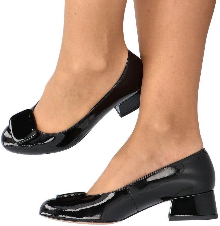 Eleganckie czółenka damskie wykonane ze skóry naturalnej lakierowanej w klasycznym czarnym kolorze. Model pochodzi z kolekcji renomowanej firmy KOTYL. Posiadają niski oraz szeroki obcas o wysokości 3,5 cm. Na przodzie buta ozdoba w kształcie prostokąta, nadająca butom oryginalności. Model wykonany ze skóry naturalnej zarówno na zewnątrz, jak i w środku. Świetnie sprawdzą się na bardziej oficjalne okazje, ale mogą również służyć na co dzień np. do pracy. Doskonałe na co dzień i perfekcyjne na wieczór. Wygodne i wyjątkowo eleganckie. Idealne połączenie klasyki, nowoczesności i elegancji. Do butów dodajemy zapasowy komplet fleków, tak abyś mogła dłużej bezstresowo cieszyć się z użytkowania zakupionego obuwia.