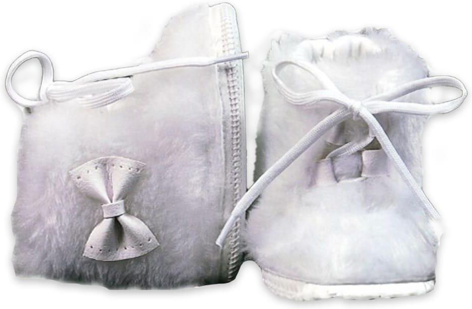 Stylowe buciki dziewczęce doskonale sprawdzą się podczas takich uroczystości jak na przykład Chrzest Święty. Kozaczki dziewczęce ocieplane wiązane z przodu. Całe buciki są z bardzo mięciutkiego futerka, które ma włosek delikatnie układający się we wzór kwiatowy a z boku bucików są ozdobne kokardki ze skórki. Produkt pochodzi od zaufanego polskiego producenta.