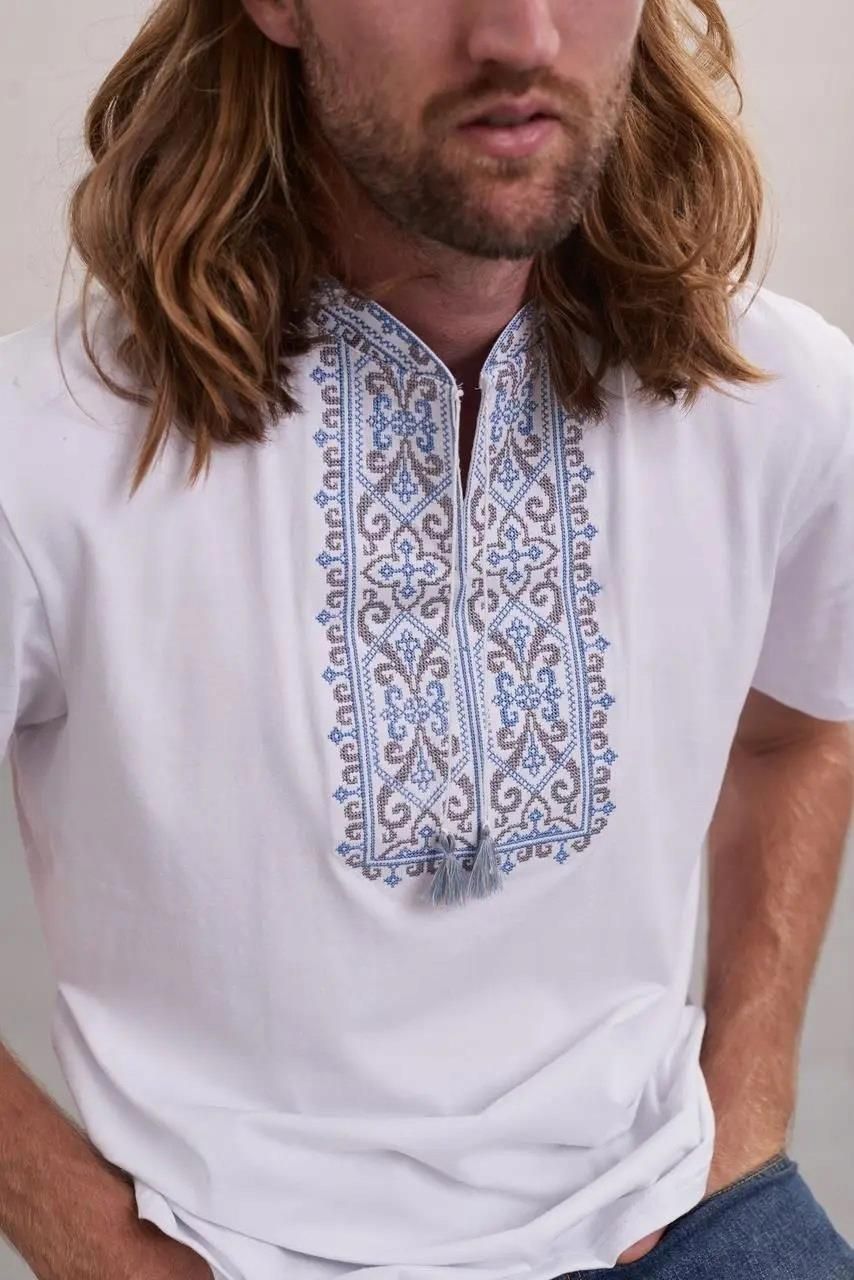 Koszulka polo męska haftowana, bardzo dobrej jakości. Haft maszynowy krzyżykowy. Koszulka wykonana z jakościowej wiskozy, ładnie się rozciąga podkreślając męską urodę. Ma kołnierzyk stójka, pasuje zarówno do eleganckich tak i sportowych stylizacji. Nowoczesny styl folkowy. Rozmiar, Szerokośc w piersiach, Długosc wyrobu, Szerokosc w ramionach, cm S, 49, 64, 41 M, 52, 68, 43 L, 54, 68, 45 XL, 56, 73, 47 XXL, 59, 75, 50 3XL, 64, 76, 52 Ukraiński producent.