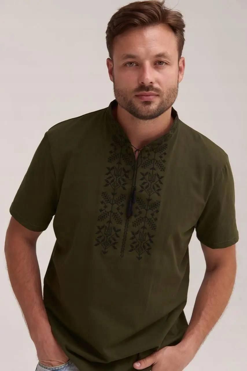 Koszulka polo męska haftowana, bardzo dobrej jakości. Haft maszynowy krzyżykowy. Koszulka wykonana z jakościowej wiskozy, ładnie się rozciąga podkreślając męską urodę. Ma kołnierzyk stójka, pasuje zarówno do eleganckich tak i sportowych stylizacji. Posiada wyhaftowany symbol Ukrainy - Trójząb. Prawdziwy sztos patriotyczny. Nowoczesny styl folkowy. Rozmiar, Szerokość w piersiach,cm, Długośc wyrobu, cm, Szerokość w ramionach, cm S, 48, 65, 40 M, 52, 66, 43 L, 55, 68, 46 XL, 56, 71, 49 XXL, 59, 73, 51 3XL, 62, 76, 53 Ukraiński producent.