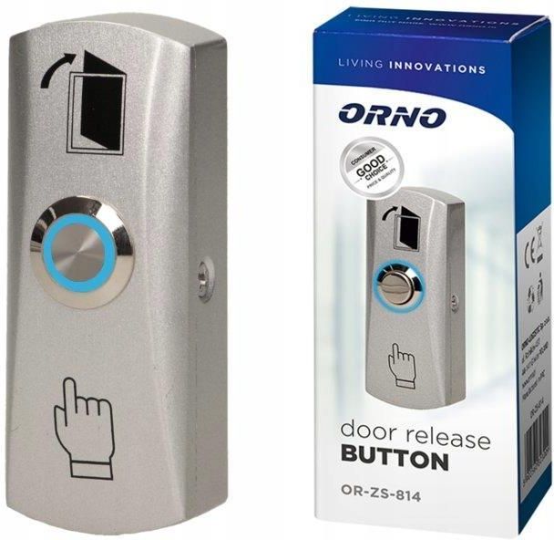 Przycisk wyjścia ORNO OR-ZS-814 z podświetleniem LED W zestawie: przycisk ORNO OR-ZS-814 - 1 szt. PRZYCISK WYJŚCIA Orno OR-ZS-814 przeznaczony jest do pracy m.in. z domofonami, wideodomofonami i szyfratorami. Przeznaczony jest do montażu natynkowego, obudowa wykonana z aluminium. Posiada podświetlenie LED przycisku. Zasilanie diody: 12V DC ✅ SPECYFIKACJA TECHNICZNA: obciążalność: 3A/36VDC​ styk: NO/COM stopień ochrony: IP20 żywotność: 500 000 cykli kolor: srebrny temperatura pracy: -20 st. C ... +50 st. C wilgotność pracy: 0-95% RH wymiary: 32 x 83 x 25 mm waga: 0,086 kg