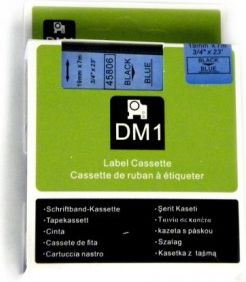 Zamiennik taśmy do drukarek etykiet Dymo 45806 Czarny nadruk na niebieskiej taśmie Rozmiar 19mm Długość 7m taśmy są w 100% zgodne z drukarkami etykiet Dymo Pasuje do:LabelManager – LM 360D, LM 450D, LM PC IILabelPoint – LP 350LabelWriter – LW 400 Duo, LW 450 DuoRhinoPro – ILP 219, Rhino 5000, Rhino …